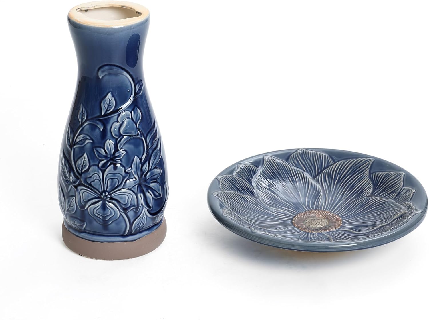 - Elegant Design: Featuring a stunning deep blue glaze with an intricate hand-carved floral pattern, this ceramic bird bath adds a sophisticated and artistic touch to any garden, patio, or backyard.