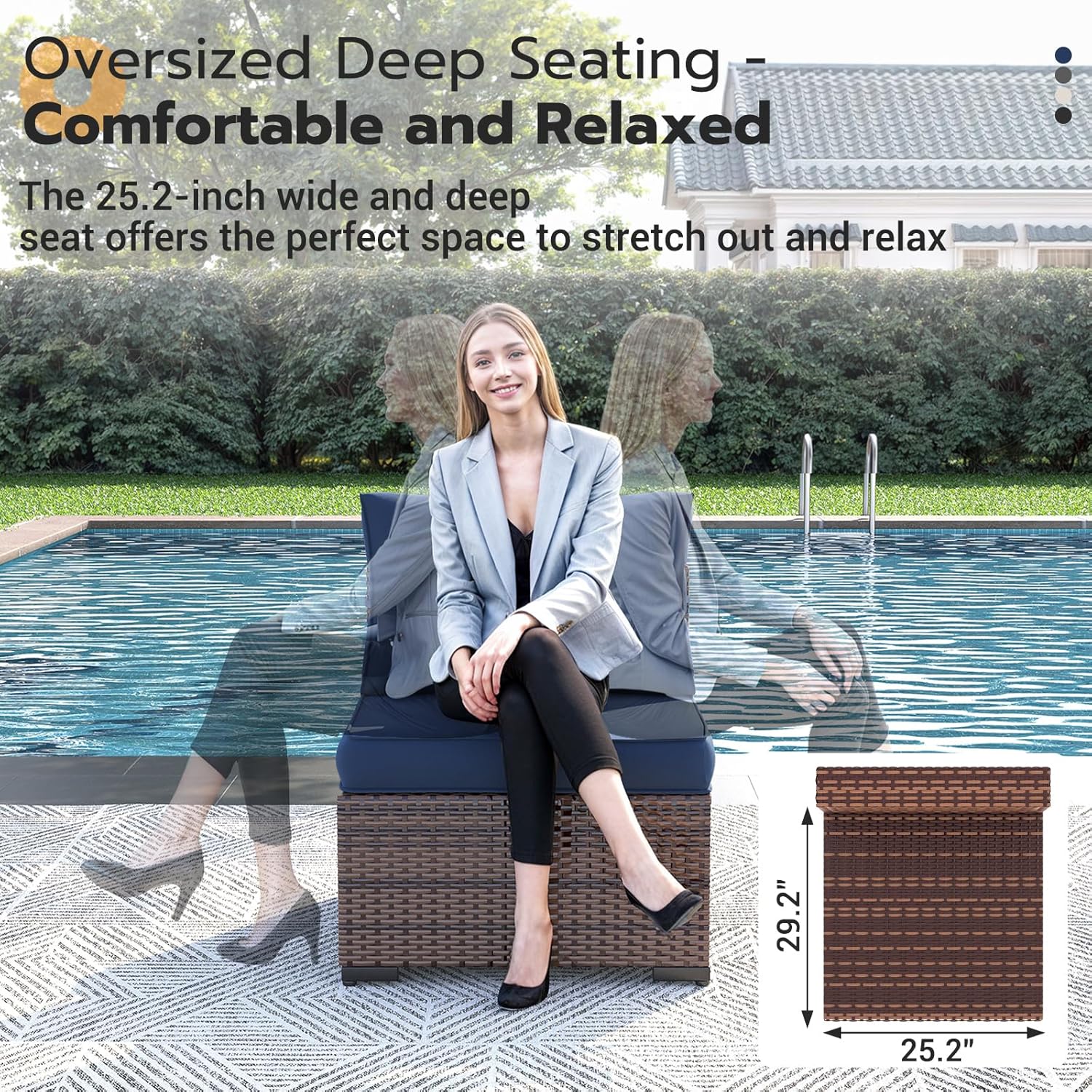 - Spacious and Comfortable Seats: Outdoor sectional furniture set features a 17.5" seat height and a 15" high backrest design, offering excellent support. The 25.2" wide and deep seats provide ample space, even after extended sitting, you wonβt experience any discomfort, ensuring long-lasting relaxation.