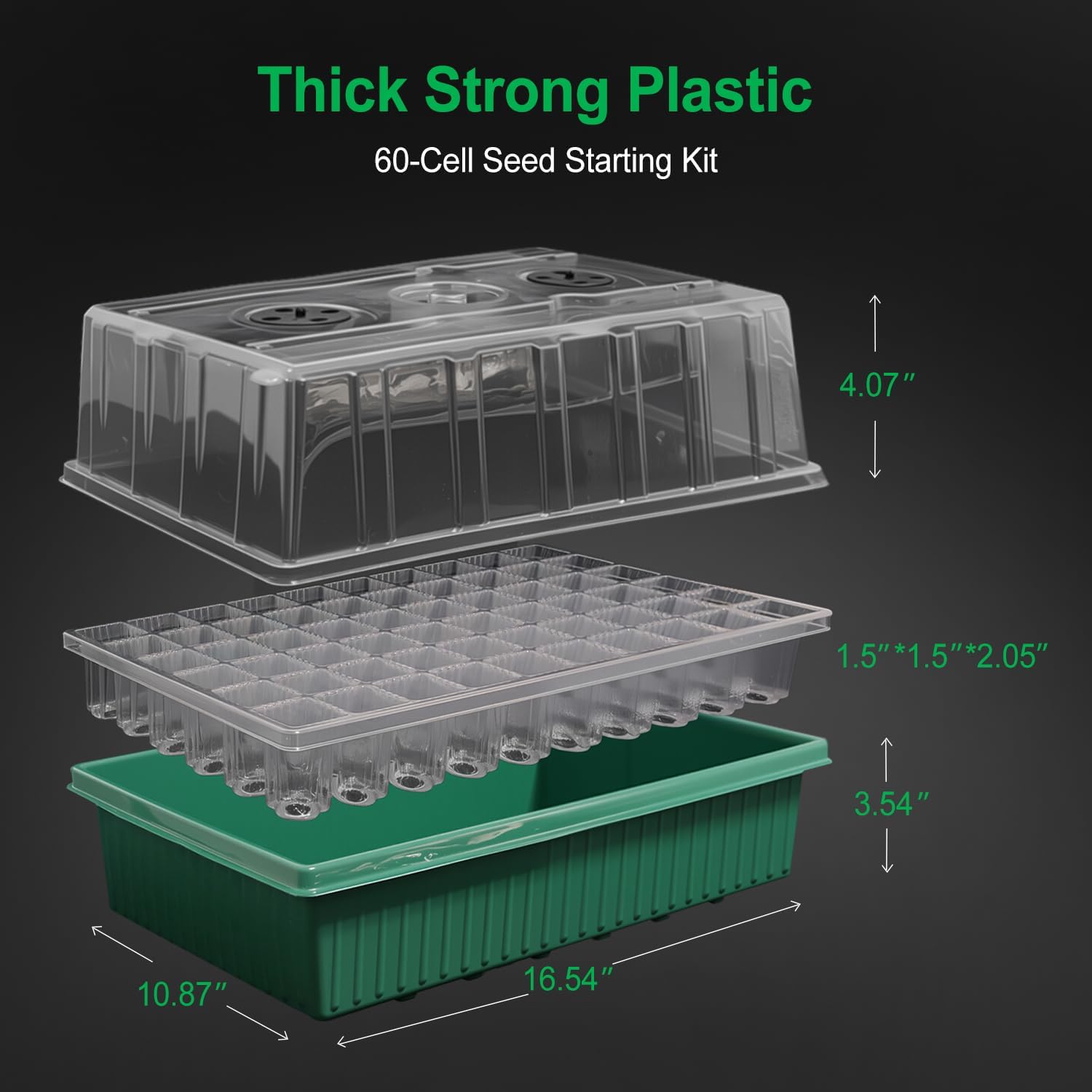 - Durable & Practical: Made of high-quality plastic, it is sturdy and durable. Seedling tray contains 60 cells, each unit measures 1.5 inches by 2 inches, which provides ample space for root growth.