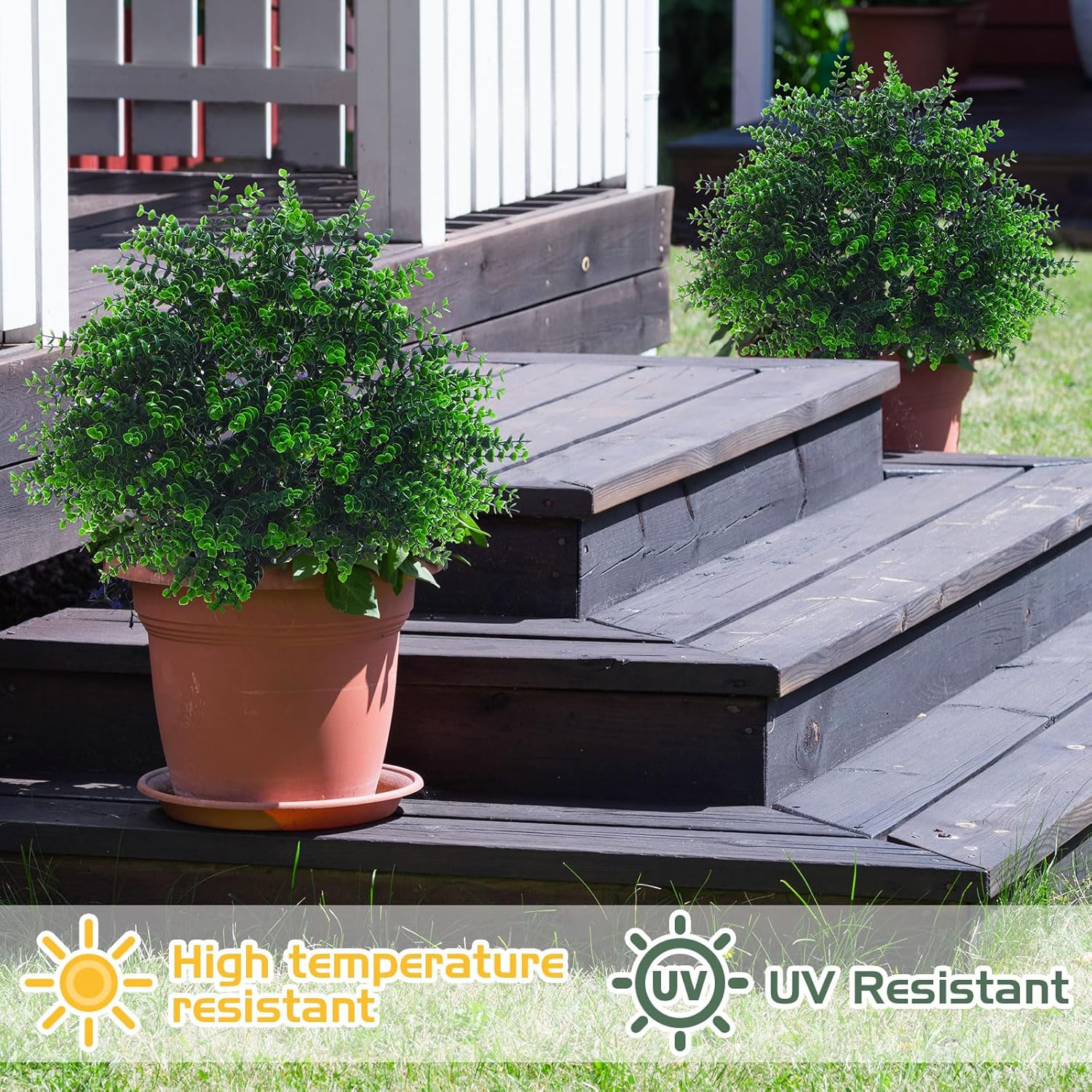 - UV Resistance: the fake bushes boxwood balls are UV resistant, will not fade in rain and sun, and will not deform under winds; This provides a lasting beauty, sturdy and long lasting, whether indoors or outdoors, such as garden, veranda, balcony, patio, front porch