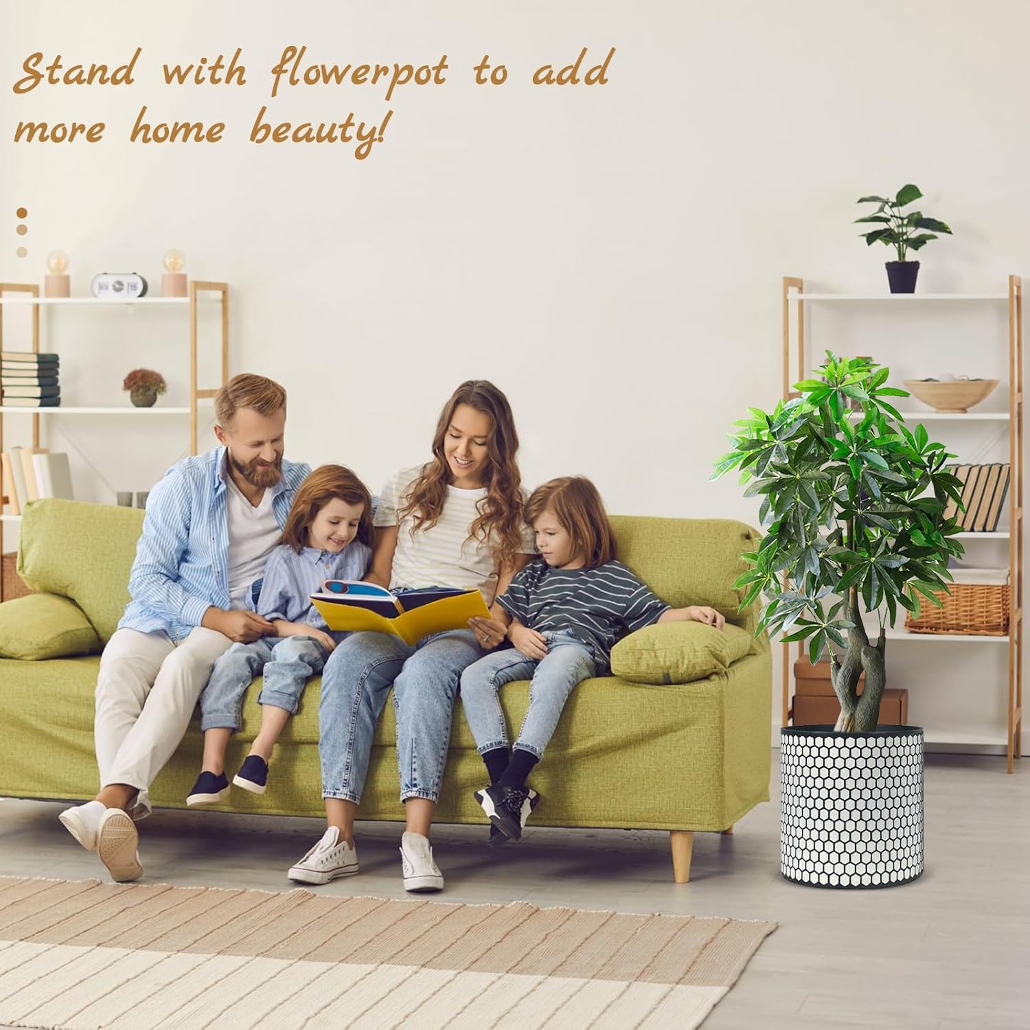 12 Inch Flower Pot Without Bracket with Drainage Holes Suitable for Indoor and Outdoor Decorative Planting (Black White Hexagon, 12 Inches)
