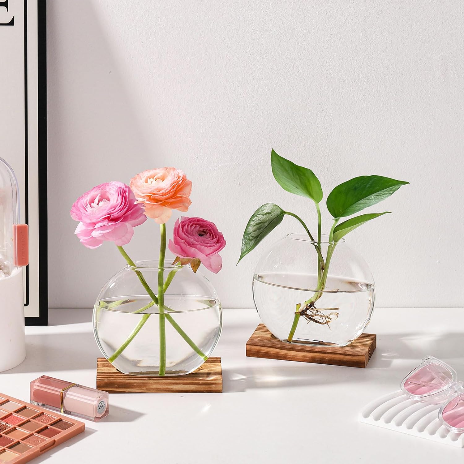 - Hydroponic planter with wooden base - This plant propagation holder is equipped with a wooden base, which is finely polished with rounded edges and no burrs, not only provides stable support for the vase but also adds a natural and rustic charm. But please notice that donβt fill this hydroponic planter up with water, and you can always add some rocks inside to keep this plant propagation holder in place, reducing the risk of the vase tipping over.