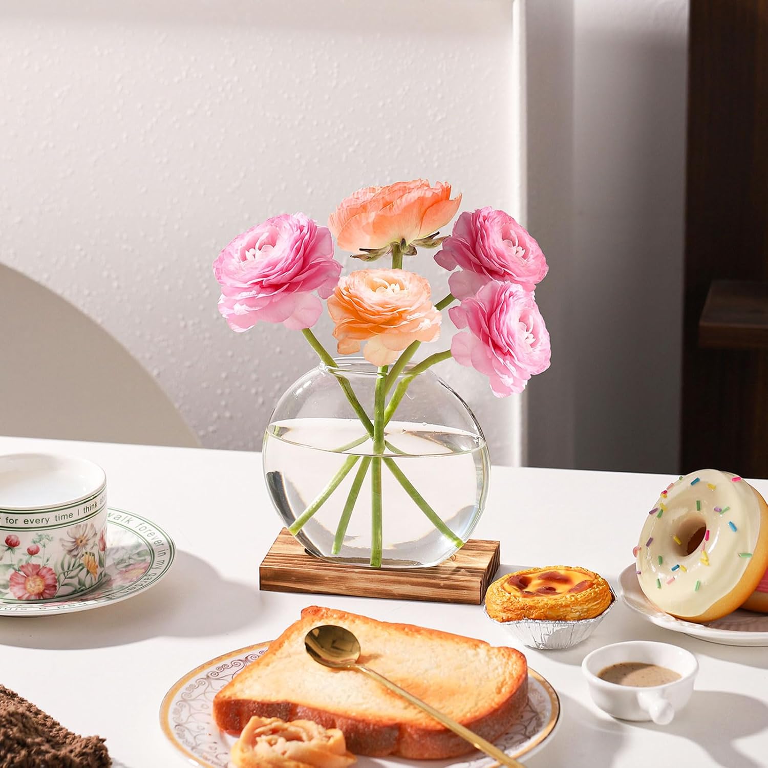 4 Pack Plant Propagation Station with Wooden Base Glass Terrariums for Indoor Plants Decorative Round Vases for Flowers Hydroponic Planter for Home Office Decor