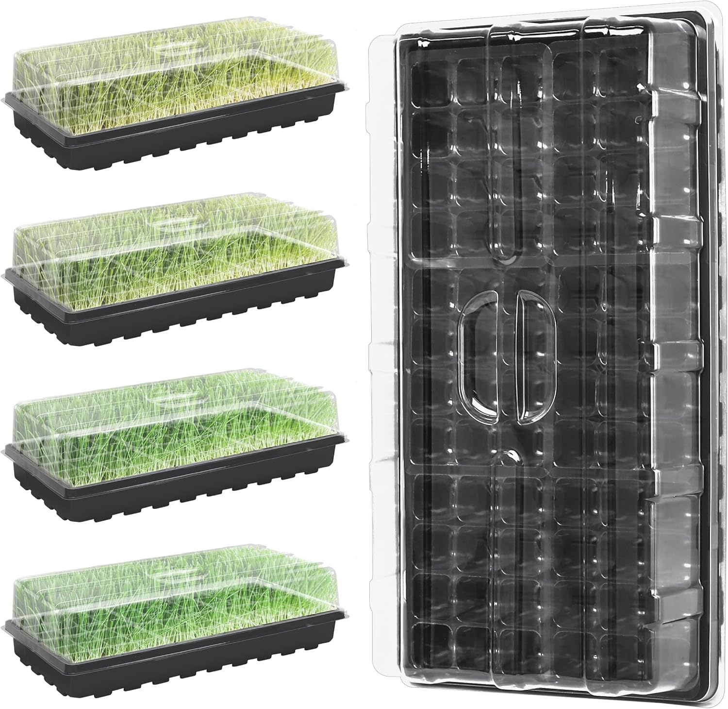 - 【Complete Kit with Reliable Support】This comprehensive kit includes 5 heavy-duty trays and matching humidity domes, providing everything you need to start your gardening project. Whether you're growing microgreens, succulents, or a full backyard garden, our kit is designed for success. We offer 24/7 customer support to assist with any questions or concerns, ensuring a smooth and enjoyable gardening experience.
