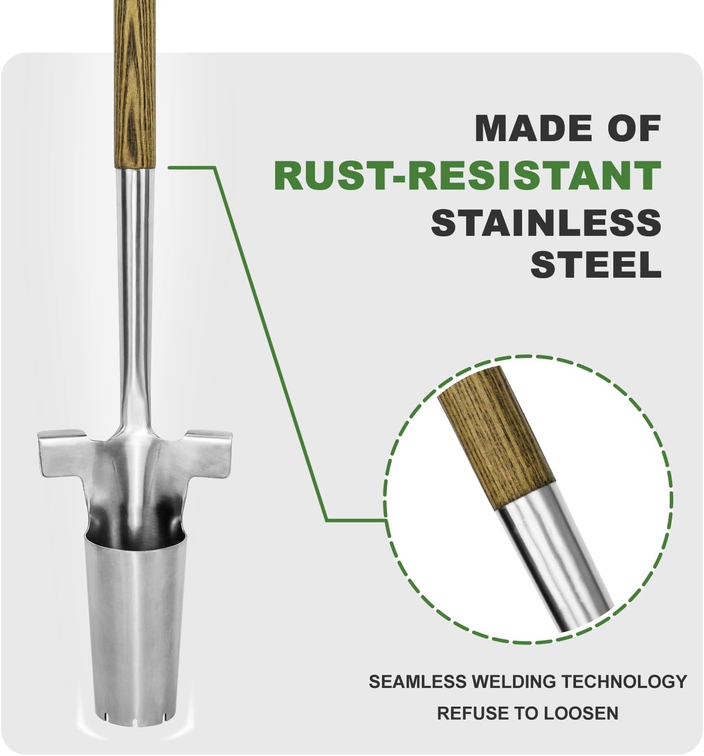 - 【Heavy-Duty Metal Resists Bending】The bulb planter long handle is made of thicker stainless steel, which has great compression and corrosion resistance and is more strong and durable, which means it doesn't bend when you push it into the ground. It has sharp edges on the bottom, which can easily cut through heavy soil in your garden.