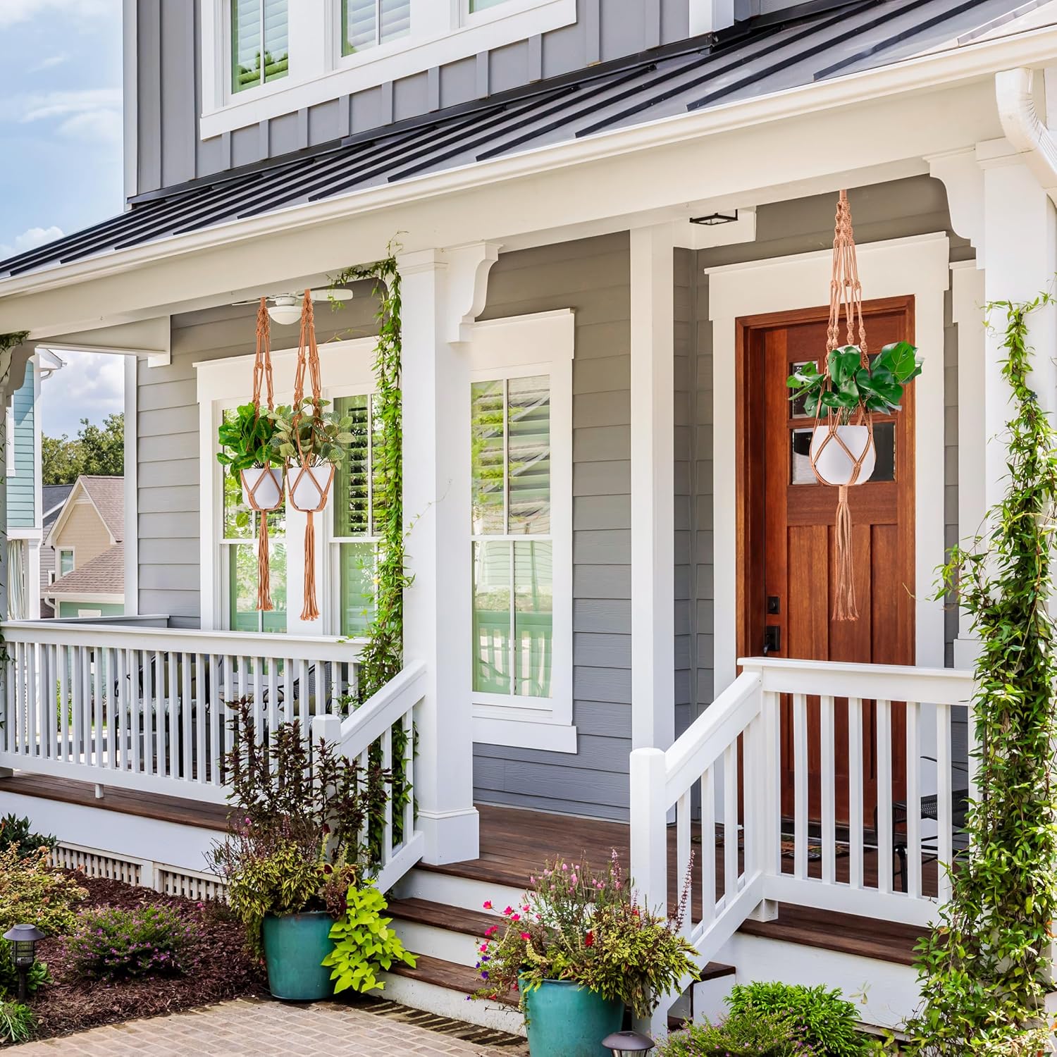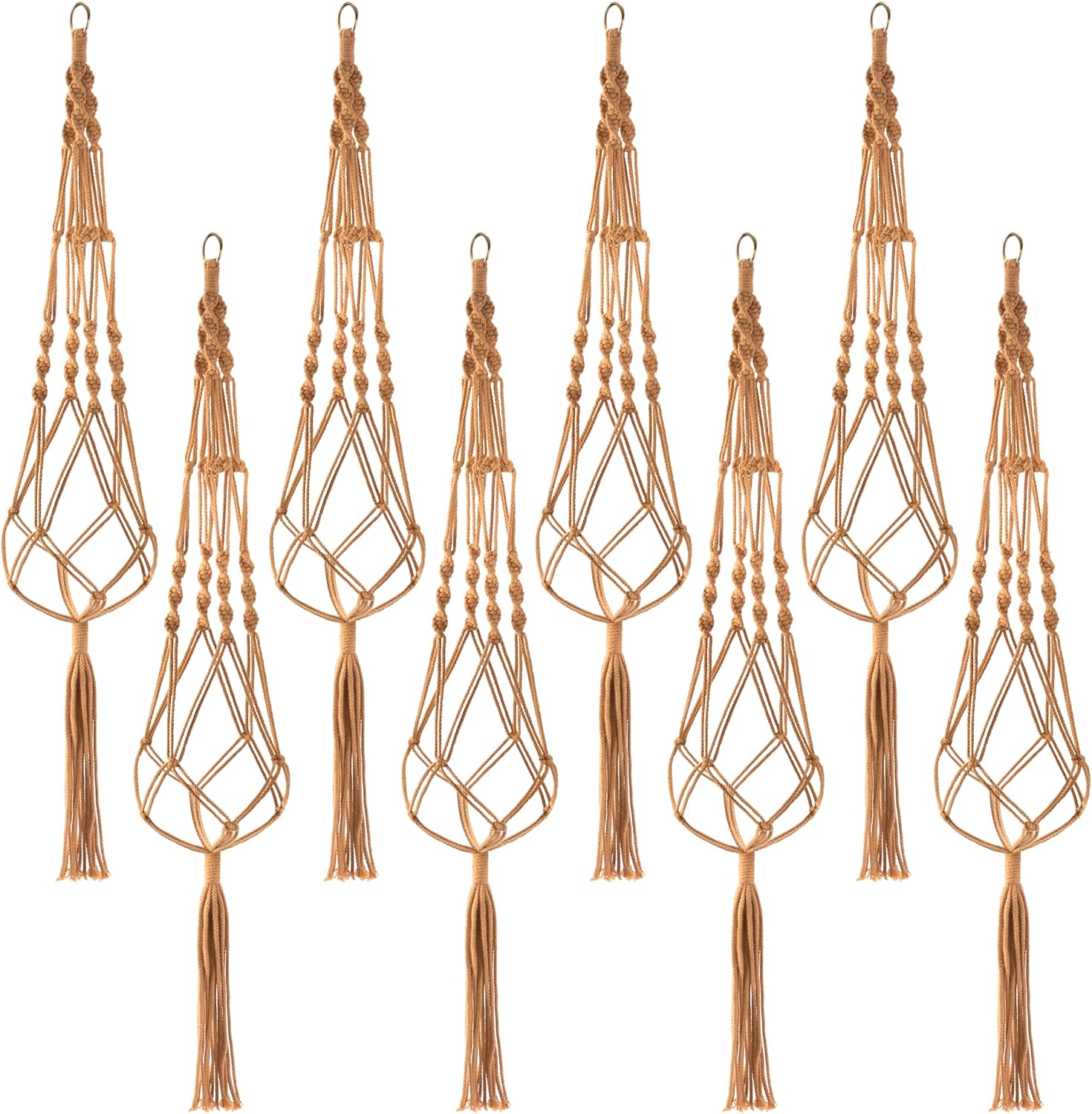 - MACRAMÉ PLANT HANGERS (8-PACK): Beautifully suspend potted plants and flowers with bohemian inspired hanging plant holders. Perfect for home and garden lovers