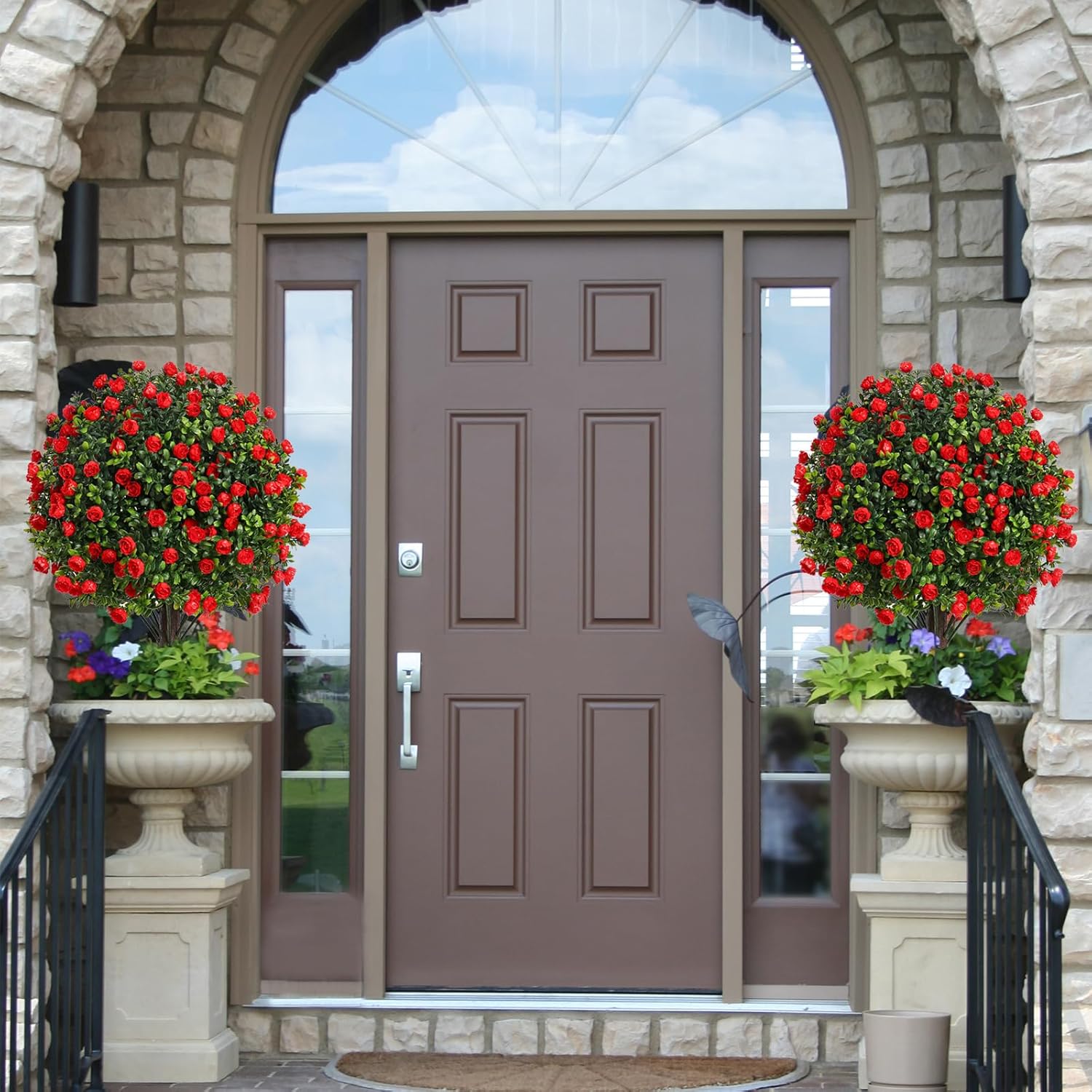 - REALISTIC DESIGN: Highly detailed artificial rose topiary trees featuring vibrant red blooms and lush green foliage made from premium PE material for a lifelike appearance