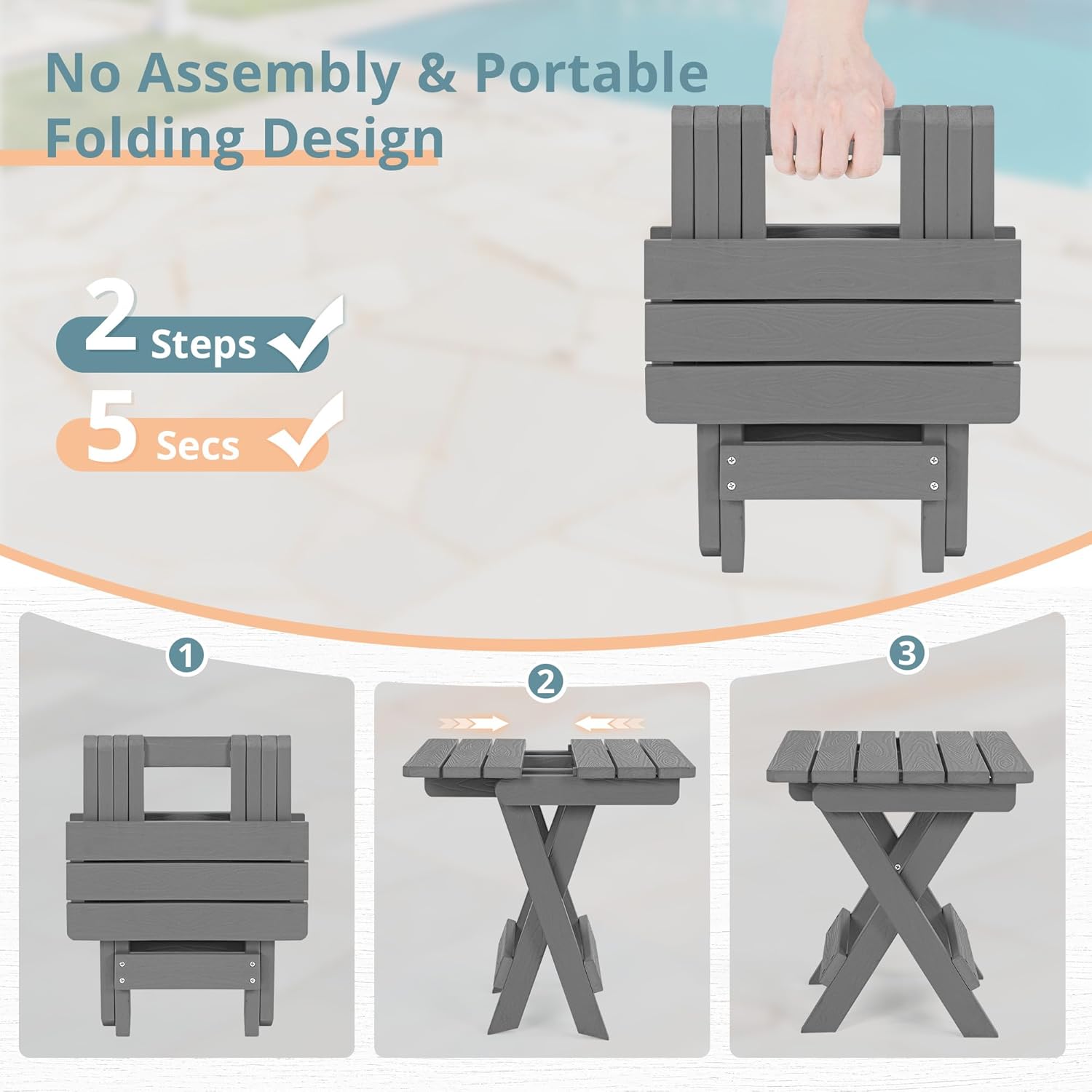 - šš¼š¹š±š®šÆš¹š² š¢ššš±š¼š¼šæ š¦š¶š±š² š§š®šÆš¹š²: The LUE BONA adirondack side table cleverly folds down to a smaller size, offering outdoor lovers an ideal way to maximize space when not in use
