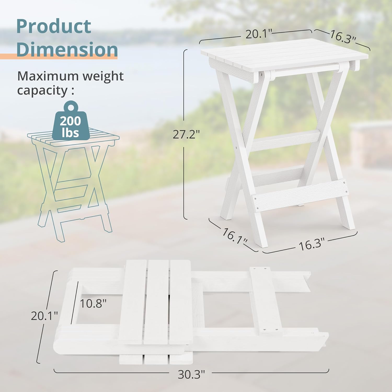 LUE BONA 27 inch Folding Side Table, HDPS Outside End Table for Patio, Porch, Deck, Pool, Weather Resistant, White