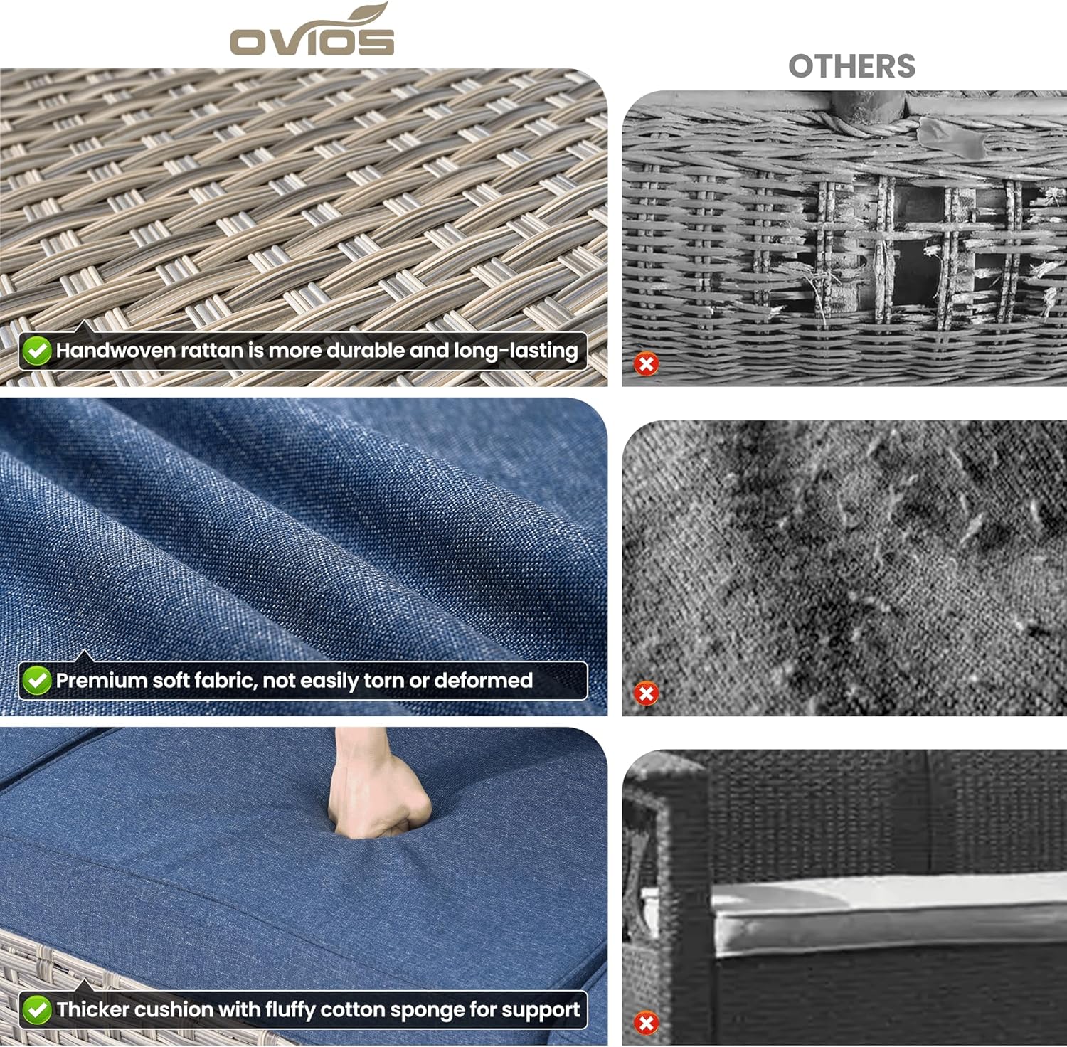 - Outdoor Furniture Set: This patio sofa set can well integrated into different outdoor scenes, patio, outdoor, porch, garden, backyard, balcony, poolside, lawn, yard, deck, etc. Assembly Tips: OVIOS outdoor patio furniture set comes with all hardware & necessary tools