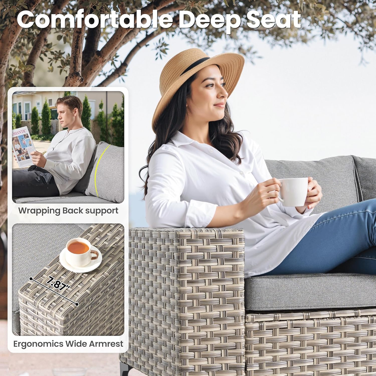 - All-weather Wicker Rattan: Our outdoor sofa sets have very durable PE wicker rattan for all-weather use and a natural texture with good coloring. The high-quality patio seating made of powder coated steel frame ensures good strength and stability