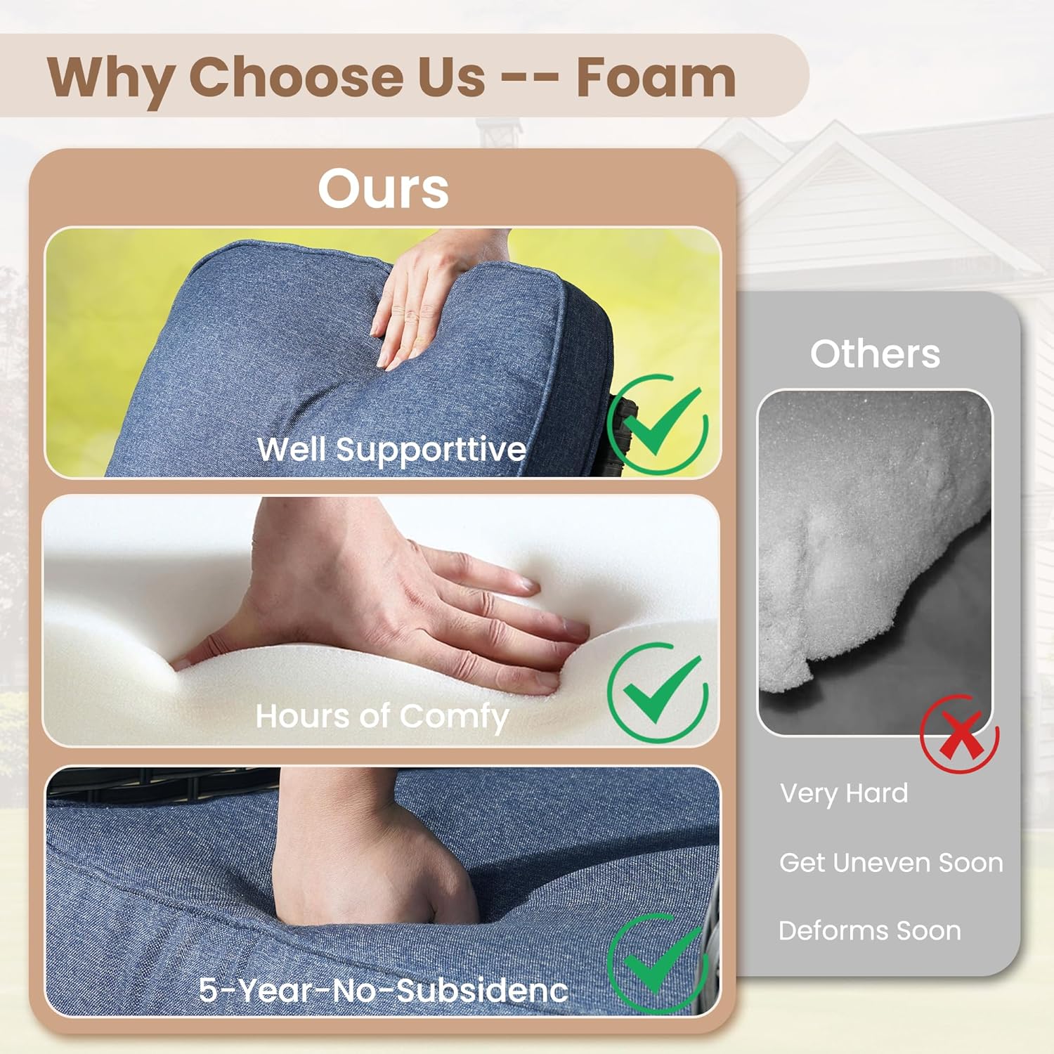 - High Density Foam &Fluffy Cotton: Selected brand new high density foam for high resilience and comfortable sitting for years. Brand new polyester cotton for fluffy back support for keeping shape for years