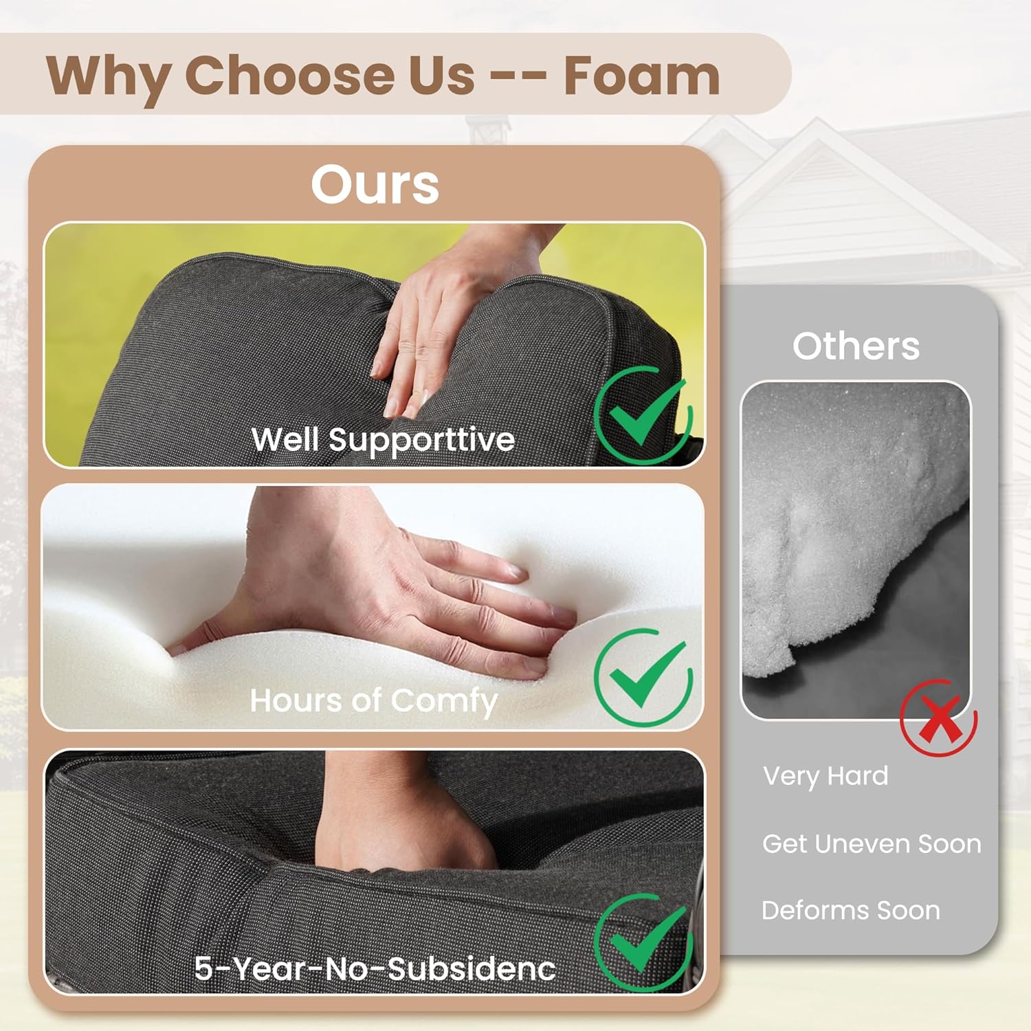 - Texture Woven Fabric: Cushions are covered by yarn dyed woven fabric, the yarns are dyed and UV treated before woven into fabric for out door fading resistant and water repellent. Looks and touches with high-end woven texture. No more worry about getting cheaply made thin print fabric. Detachable & washable