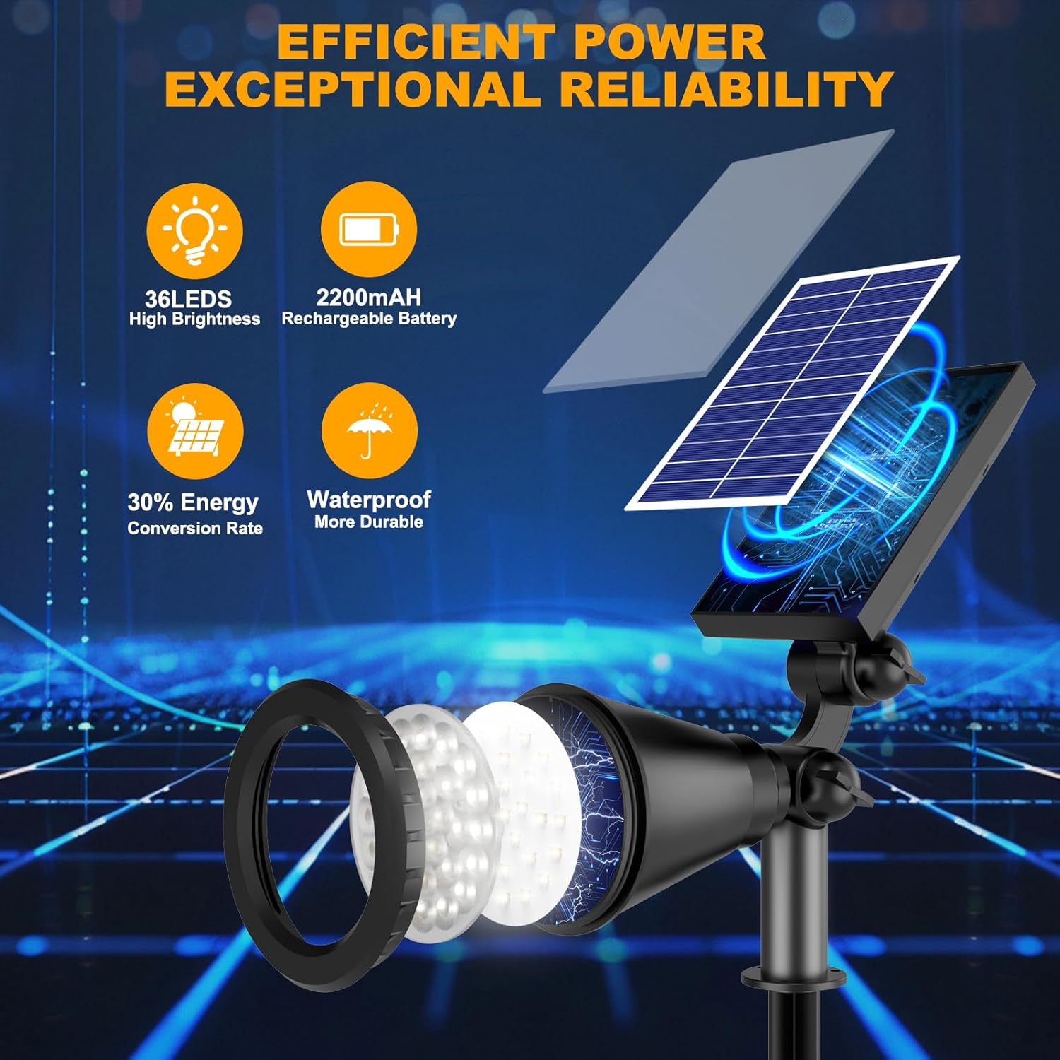 - 【Weatherproof and Built to Last】Constructed from durable ABS and rated IP67 waterproof, these solar lights outdoor waterproof are designed to withstand rain, snow, and intense heat. Reliable year-round, these solar spot lights ensure your yard, garden, or patio stays brightly lit, no matter the weather
