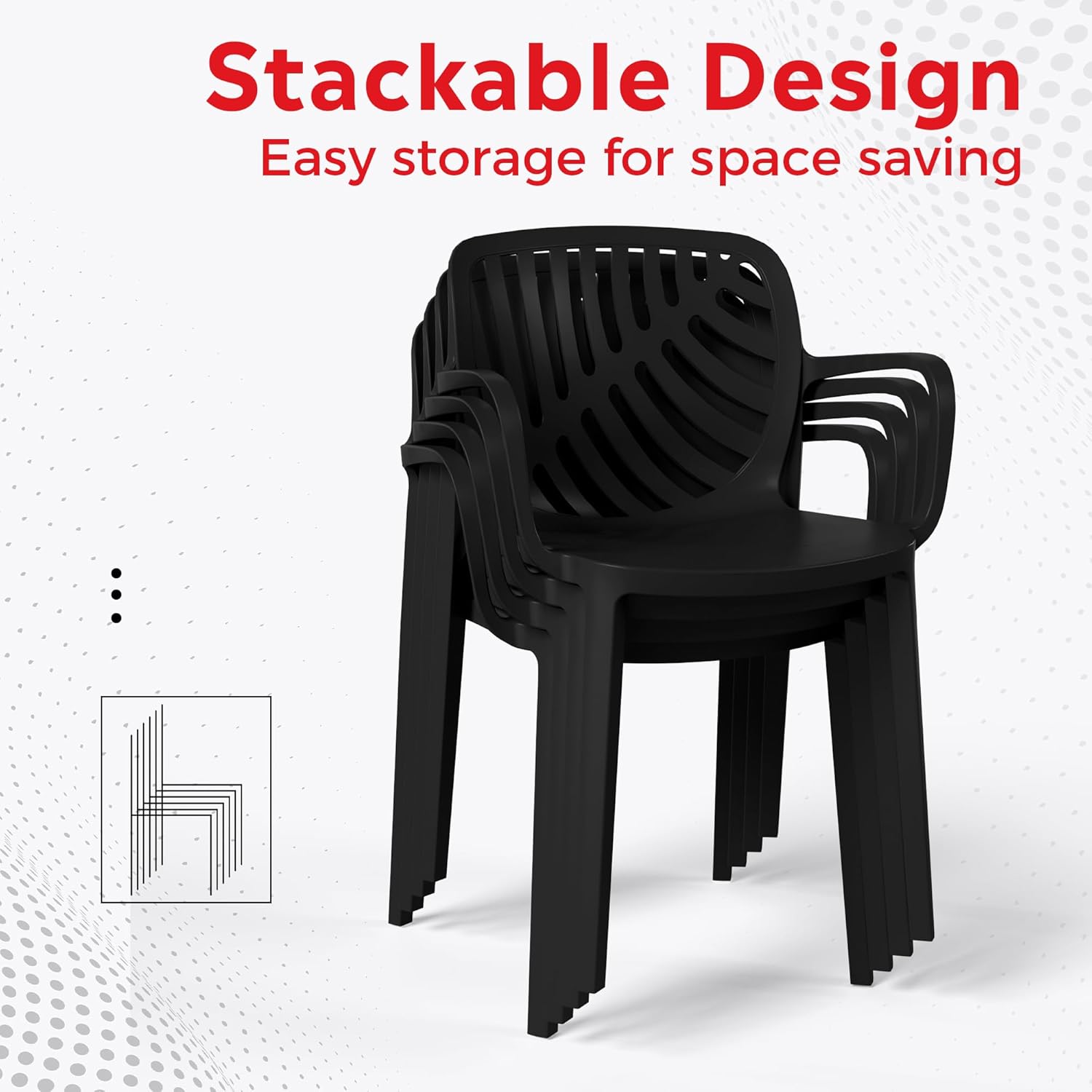 - Set Includes: Four (4) Plastic Resin Dining Chairs and One (1) 31.5" Wide Square Patio Dining Table