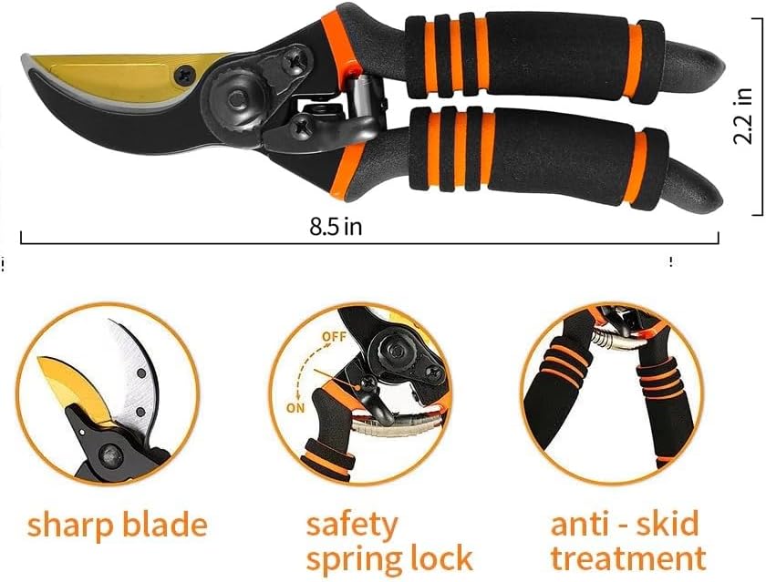 - 🌹8.5" Professional Premium SK5 Steel with Titanium Bypass Pruning Shears-Ultra-sharp And Durable,Ergonomically Designed,Versatility Pruners For Gardening,Safe And Easy To Handle
