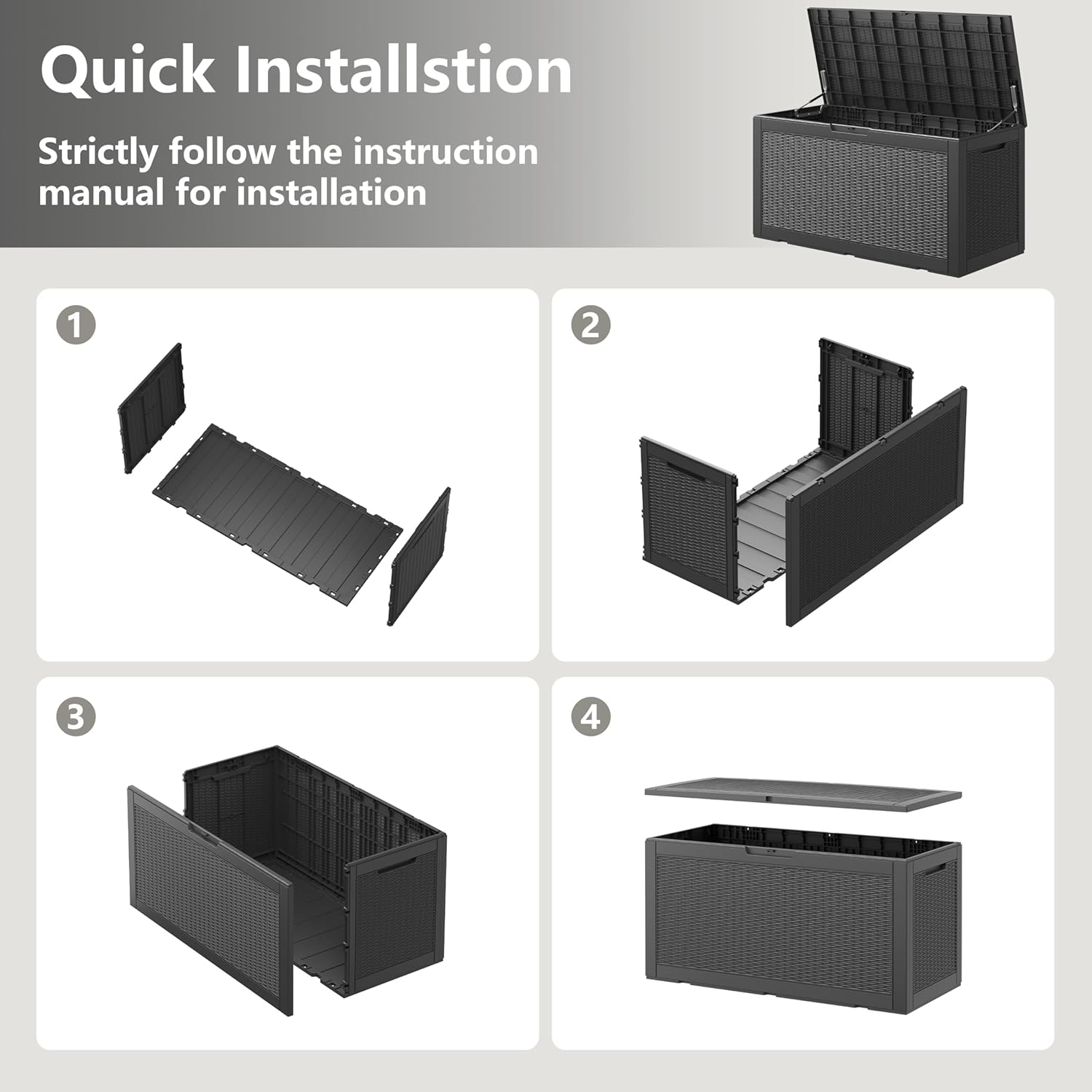 • Deck Boxes Outdoor Waterproof: Designed as a waterproof storage solution, this deck box protects your belongings from moisture and ensures they stay dry even during heavy rain. The lockable lid adds an extra layer of security, keeping your valuables safe from theft or damage.