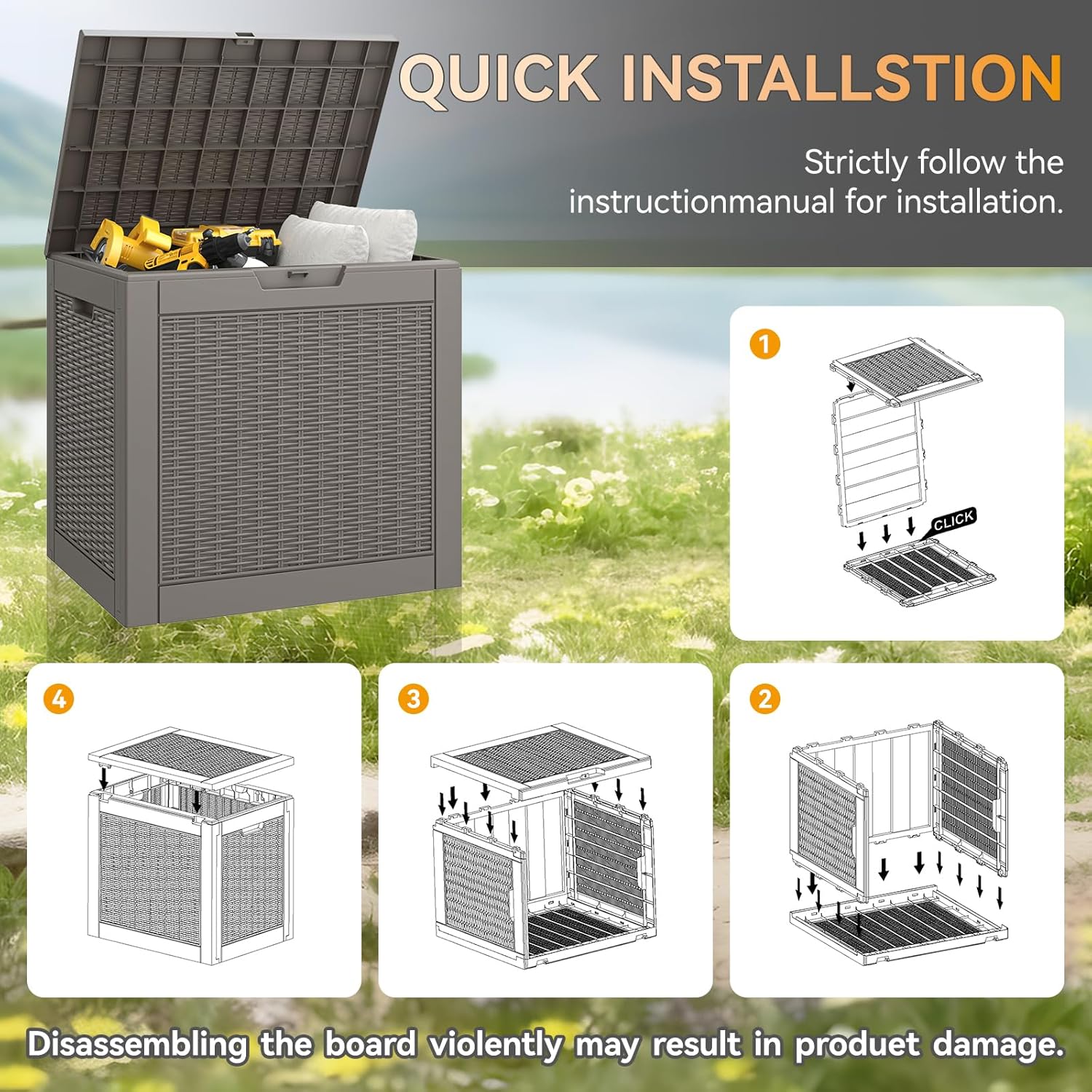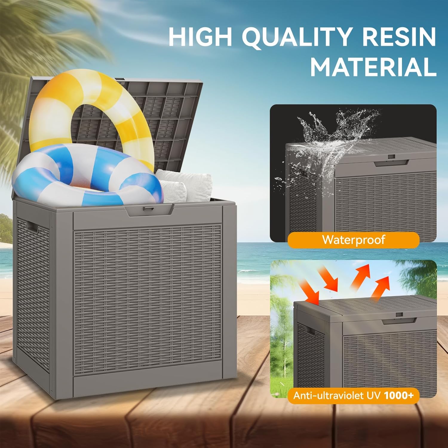 - Deck Boxes Outdoor Waterproof: Designed as a waterproof storage solution, this deck box protects your belongings from moisture and ensures they stay dry even during heavy rain. The lockable lid adds an extra layer of security, keeping your valuables safe from theft or damage.