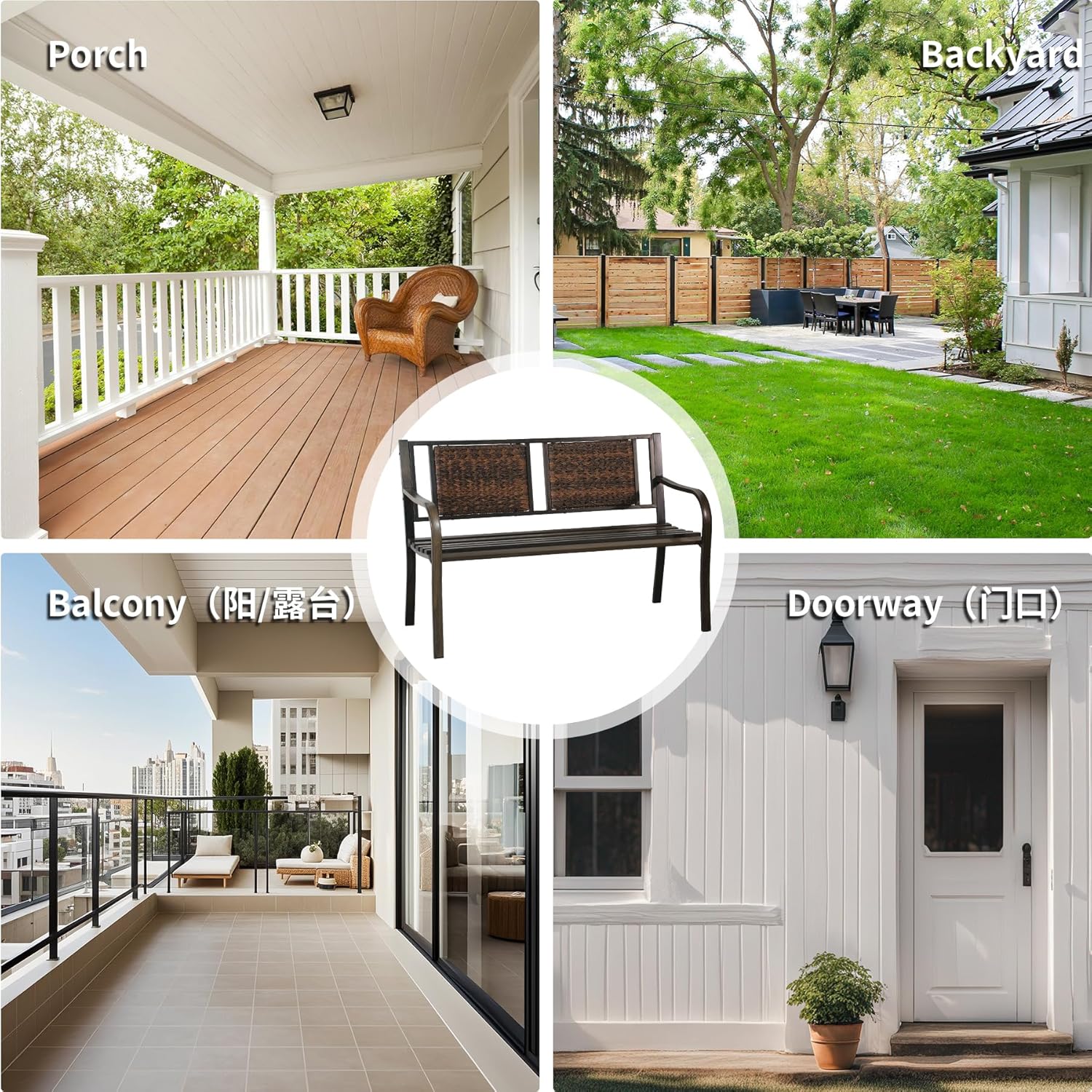 YLGJ&TIDY 50" Outdoor Bench, Metal Garden Bench, Patio Park Bench with Backrest & Armrests, Rust-Resistant, Perfect for Gardens, Parks, Porch, Lawn and Yard (Country Rustic)