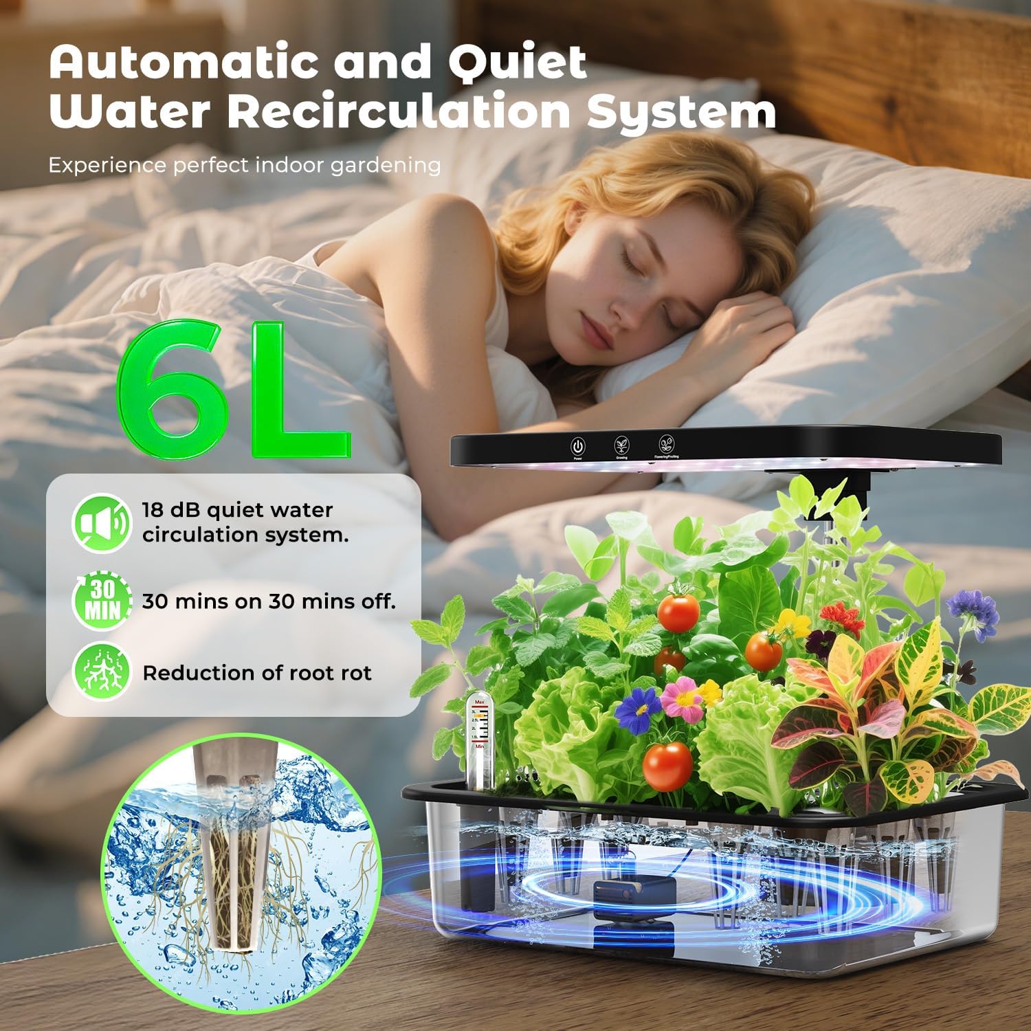 - ๐ท๐ฃ๐ฒ๐ฟ๐ณ๐ฒ๐ฐ๐ ๐๐ป๐ฑ๐ผ๐ผ๐ฟ ๐๐ฎ๐ฟ๐ฑ๐ฒ๐ป๐ถ๐ป๐ด ๐๐ถ๐ณ๐ ๐ณ๐ผ๐ฟ ๐๐น๐น ๐๐ด๐ฒ๐:Our indoor herb garden with grow light features a low-noise cycle (18dB), runs the pump every 30 minutes, and the self-regulating ecosystem maintains perfect pH/NPK levels.The large 6L capacity tank can support you on holiday, travelling, or on business trips (15-30 days).15 pods compared to a regular conventional hydroponics system is 3-6 pods more. Ideal gift for plant lovers looking for fresh food all year round!