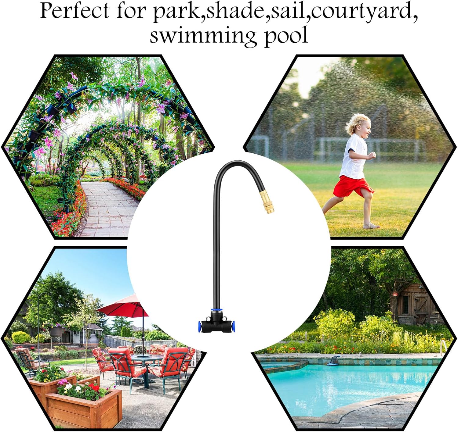 - Enough Quantity for Wide Coverage: the package includes 10 individual brass misting nozzle tees with a built in 16 inch hose, providing ample coverage for your outdoor cooling needs; This significant quantity assures you of a continual and consistent cooling experience in multiple outdoor areas