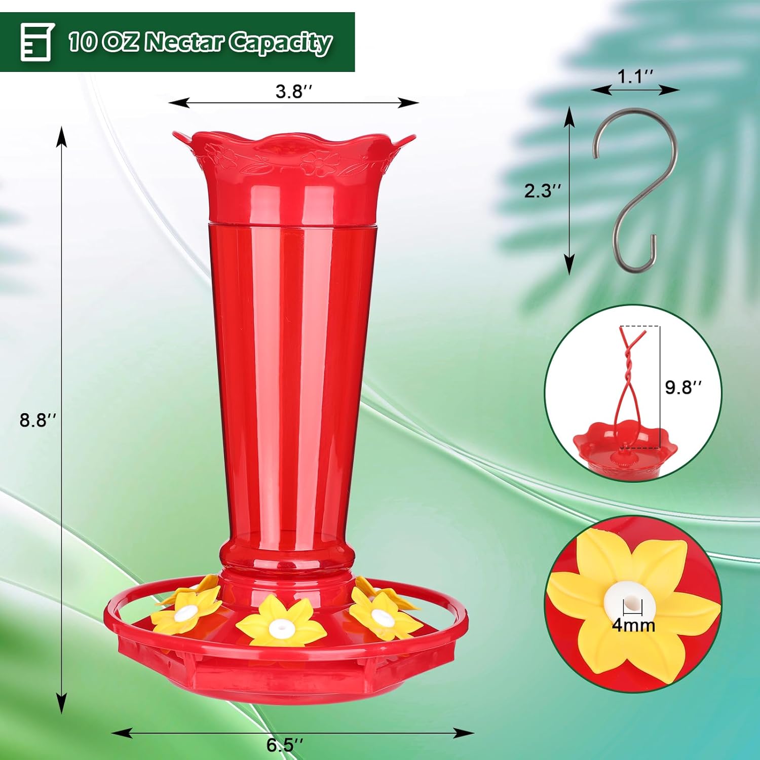 FEED GARDEN 10oz Plastic Hummingbird Feeders for Outdoors - 1 Pack Red, Ant & Bee Proof, 6 Feeding Ports, Easy Clean Red Nectar Feeders for Outside Hanging, Gifts for Mom