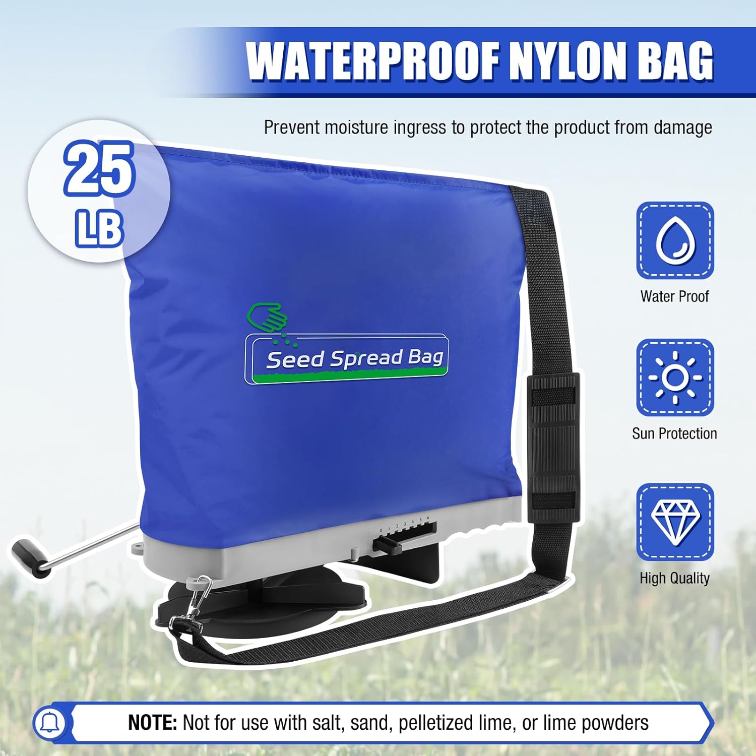 - Guarantee: Package include one bag seed spreader; We provide one-year guarantee for our Zipcase shoulder seed spreader; Please do not hesitate to reach out if you have any questions or encounter any issues with our products; We will reply and solve your problem in 24 hours