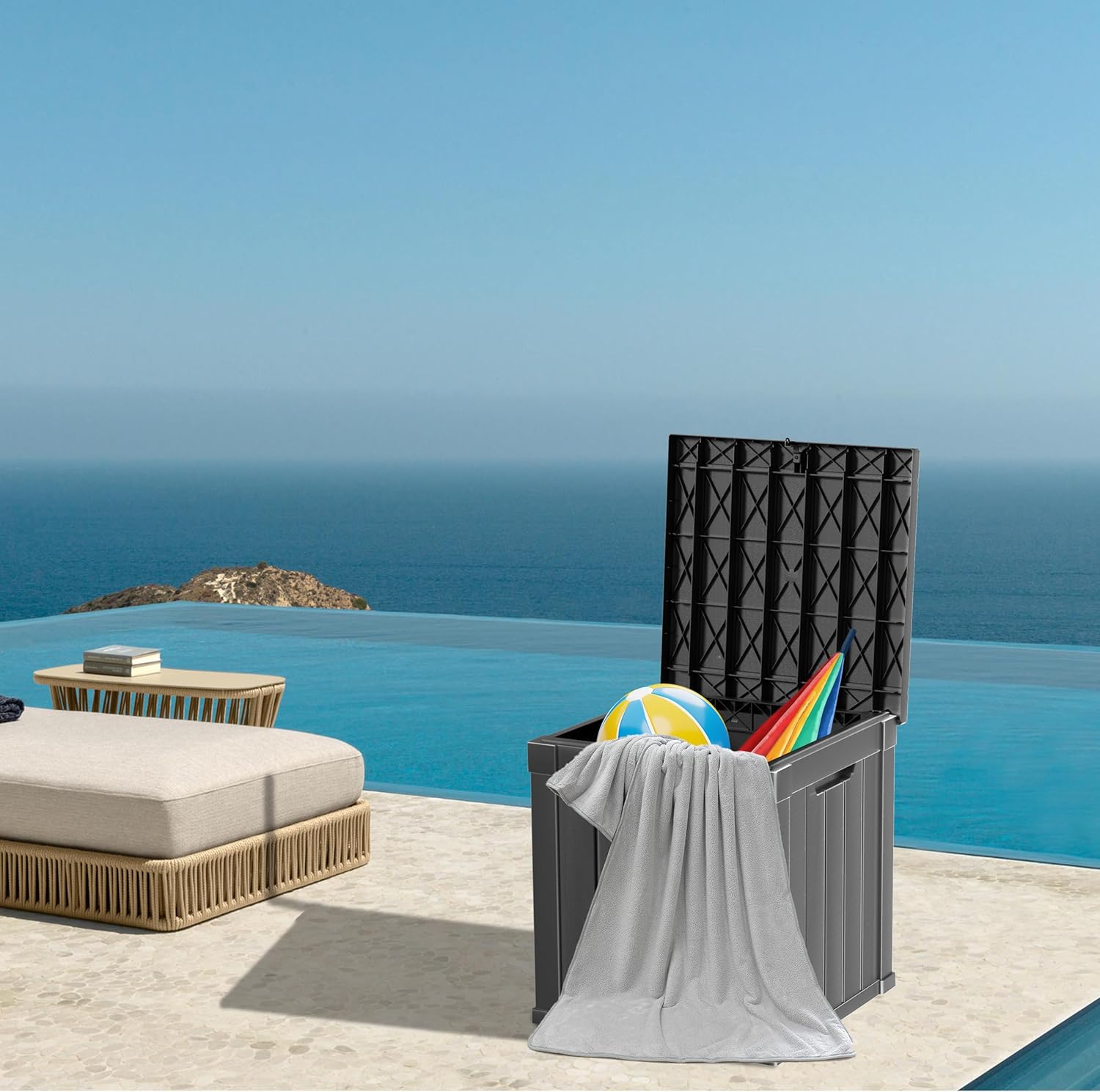 - Large Capacity: This 48-gallon deck box offers ample storage space for your outdoor accessories, and it has a 280-pound weight capacity and can be used as a separate patio seat or indoor table.