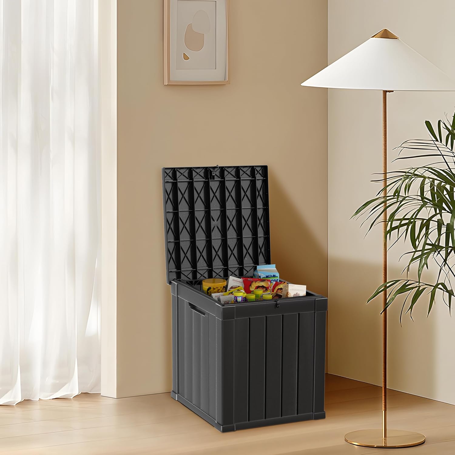 - Wide Range of Use: With a capacity of 100 gallons, this storage box can also be used as a patio seat, storage bench or footstool, whether it's family party supplies, camping equipment, gardening tools.