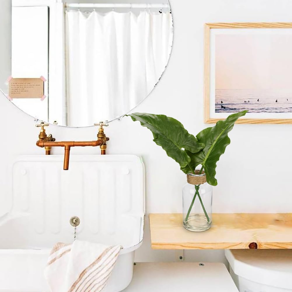 - [Premium Faux Alocasia Plant] -2 big artificial alocasia leaves in a glass bottle vase with faux water in order to finalize the design, the hemp rope creates a chic rustic style to this fake potted plant.