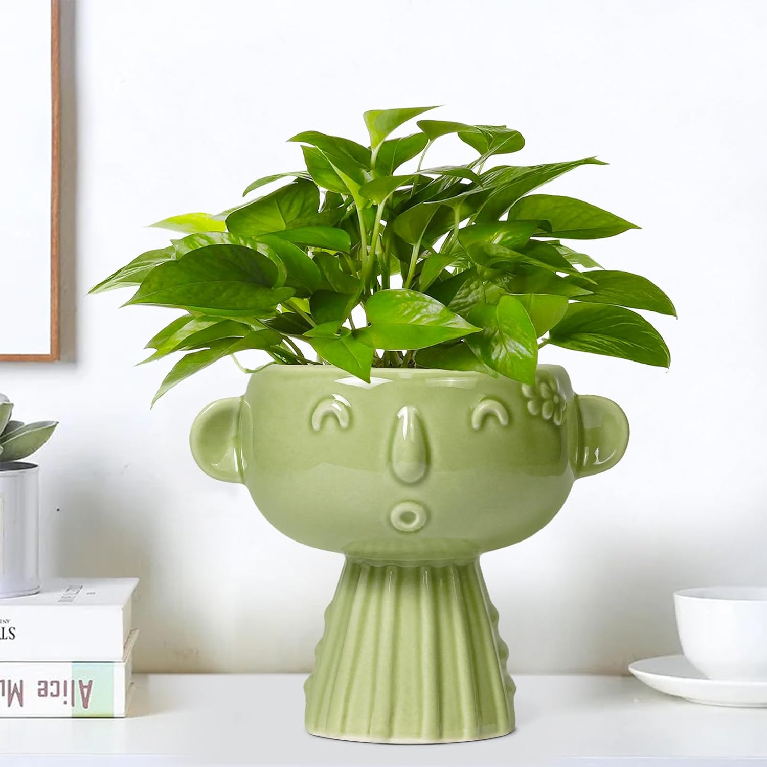 - Charming Design: This face planter features a delightful human face design, allowing you to style plants as hair. Itβs a head planters ideal for bookshelves, dressers, nightstands, side tables, and living room or foyer table decor