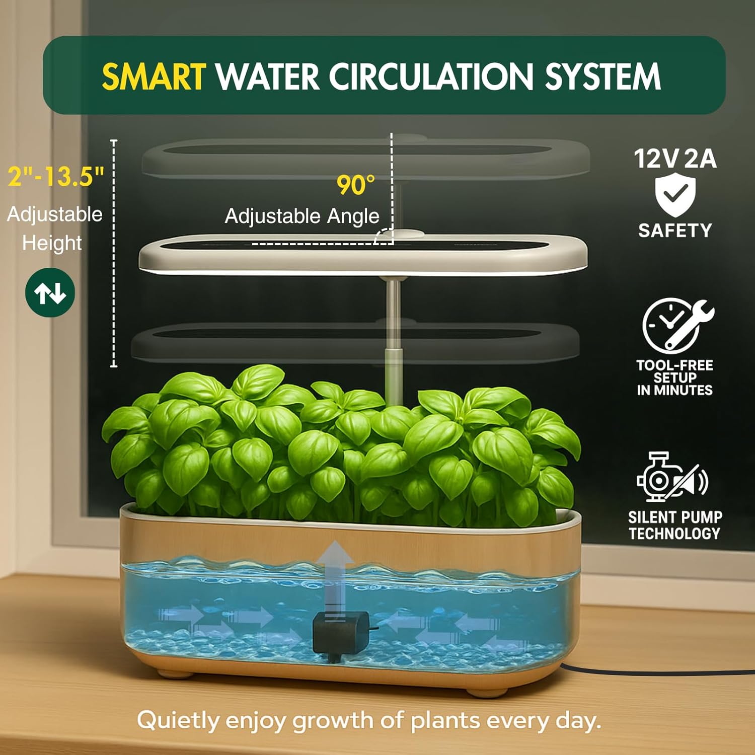 - 【Adjustable Light Height & Smart Timer】The 13.5-inch height-adjustable light post can be raised as your plants grow, while the powerful LED light features 4 smart timer settings: 18h-on/6h-off, 16h-on/8h-off, 14h-on/10h-off, and 12h-on/12h-off. No need to turn it on or off manually—just set your preferred cycle and let your garden thrive.