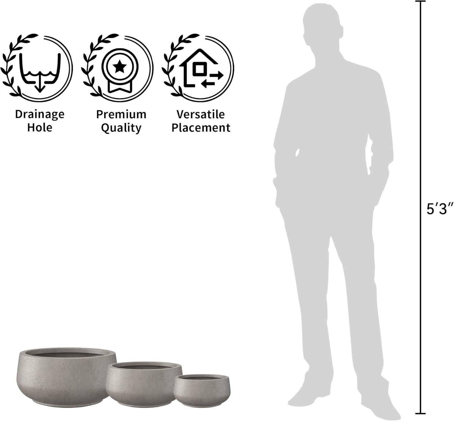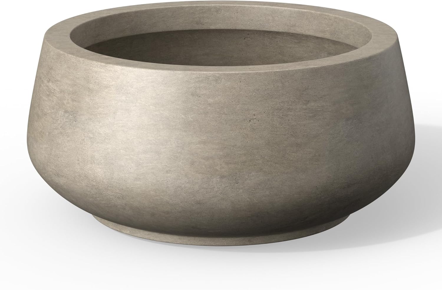 Kante 12.5" Dia Round Concrete Bonsai Planters, Outdoor Indoor Garden Plant Pot with Drainage Hole for Home, Patio, Garden, Weathered Concrete