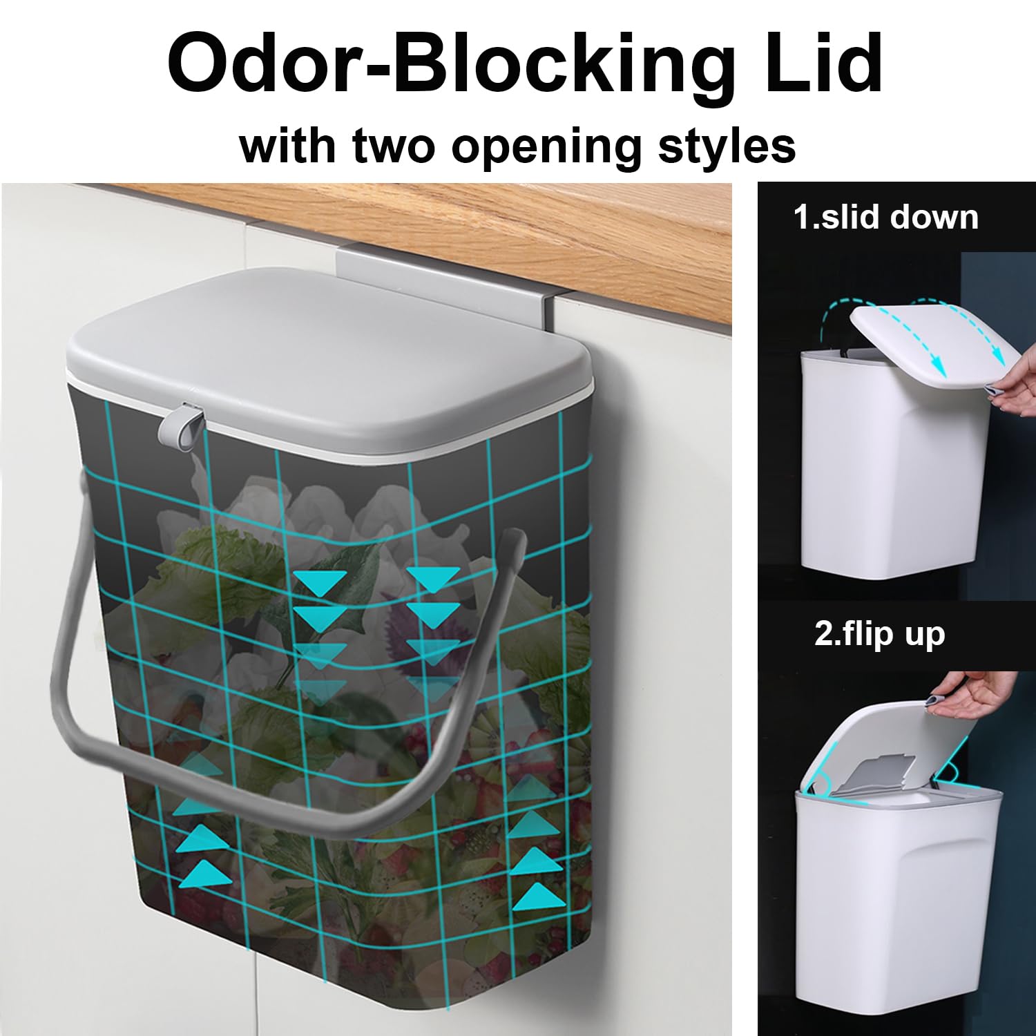 - Odor-Blocking & Fruit Fly Free Compost Pail: Say goodbye to the smelly decomposing waste. Our compost bin for kitchen counter comes with a precisely-fit lid, you can let the scraps build up for several days without worrying about attracting fruit flies or terrible smells into your kitchen.