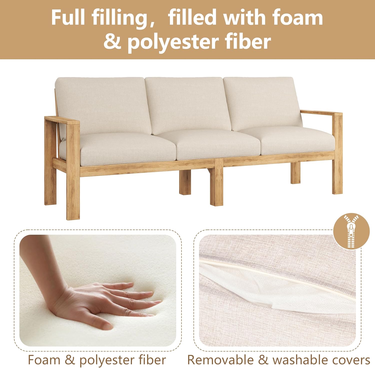 - š[Transitional Style] - The transitional style of this sofa chair is sure to give your outdoor space a minimalistic yet classic look that will match seamlessly with any arrangement you currently have. With a classic acacia wood frame and modern cushions, this set will give your backyard an instant upgrade in style and comfort.