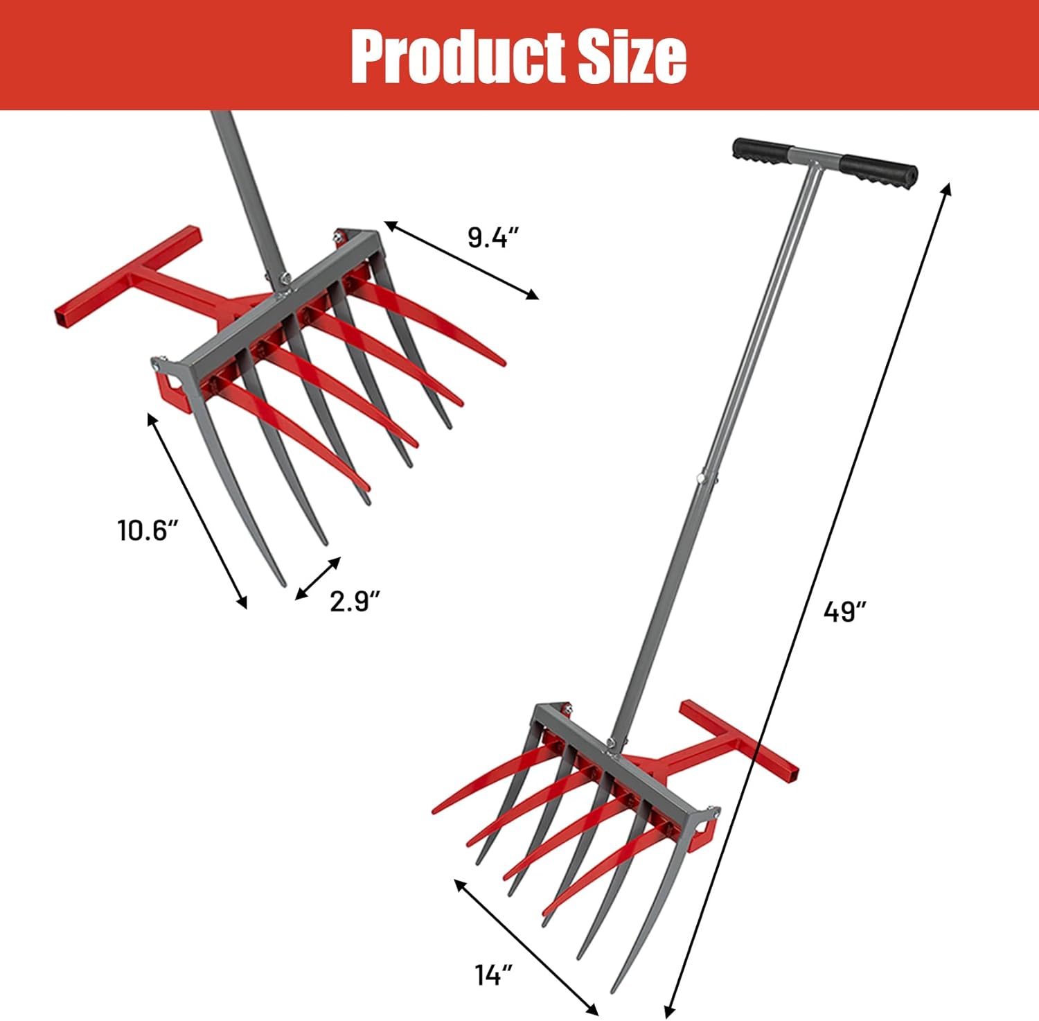 - 【Easy to Use & Highly Effective】This manual cultivator is incredibly user-friendly. Simply push the fork into the soil, step down on the gray rod, and let the tool effortlessly break up compacted earth, providing excellent soil aeration and creating perfectly sized soil chunks for planting.