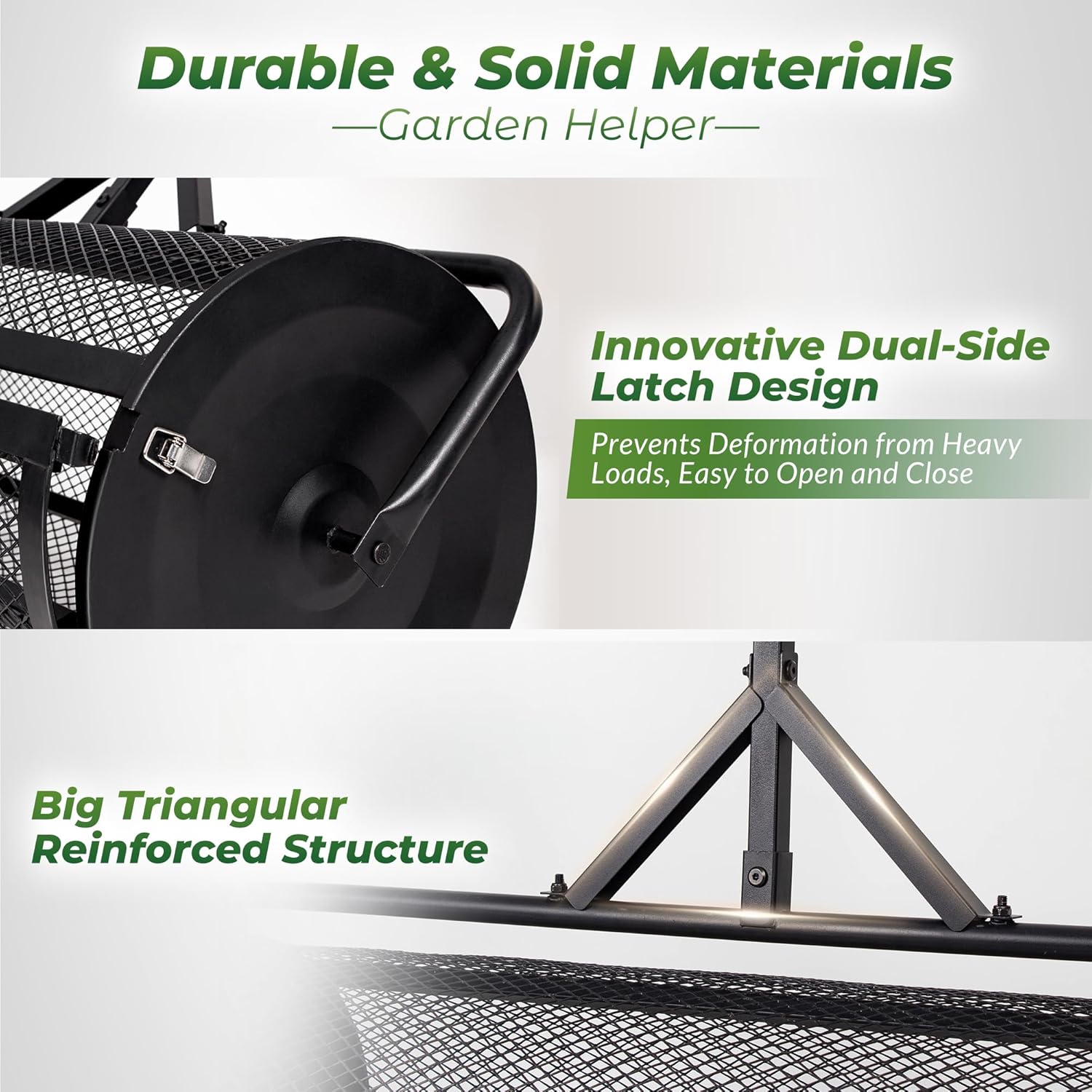 Walensee 44 Inch Compost Spreader Peat Moss Spreader with Side-Latch Design, Upgraded Large-Capacity Metal Mesh Roller for Lawn and Garden Care, Durable Manure Spreader for Seeding and Fertilizing