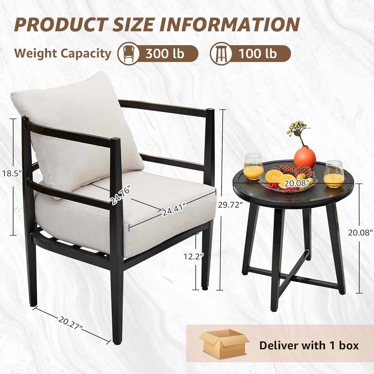 - Please Don't Hesitate:This patio bistro set is designed to be stylish and comfortable, adding a touch of concise and comfort and modern flavor to your outdoor place. It is great for garden, backyard, poolside and balcony. And we will take responsibility for the patio furniture sets. Once damaged issues exist, contact us and we will help you.