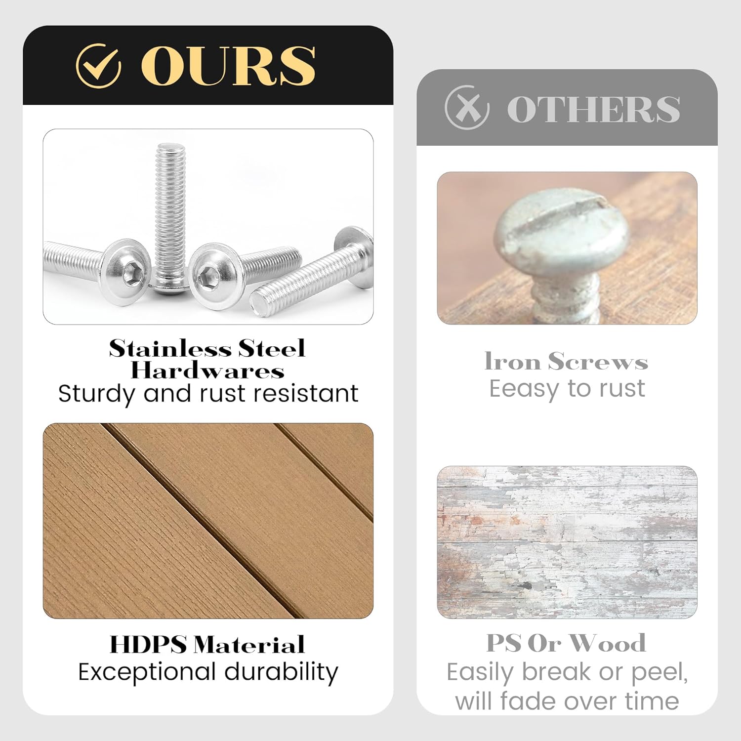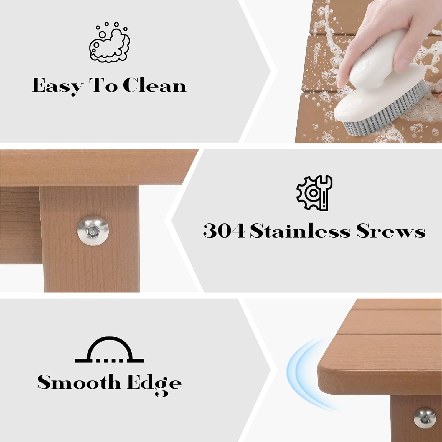 - ăLow Maintenance Costsă: Effortless to cleanâjust use soap, water, a sanding sponge, or a soft brush. No painting, staining, or waterproofing needed, saving you time and upkeep costs.