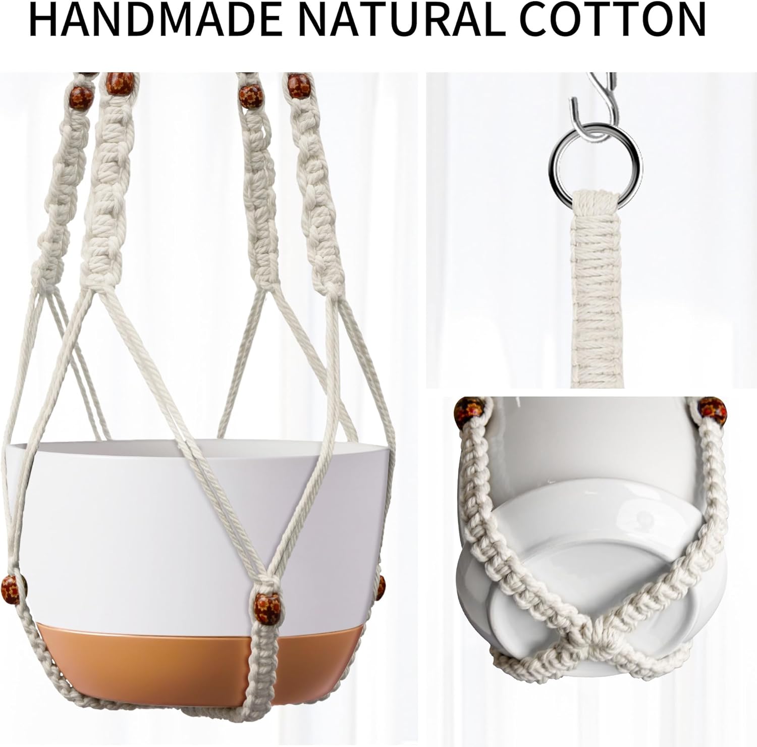 - Handmade for Durability: Crafted from natural cotton rope, this hanging planter is meticulously handwoven for long-lasting strength and support; Fits 6 to 15 inches pots and supports up to 22 lbs, keeping your plants safely suspended without tilting