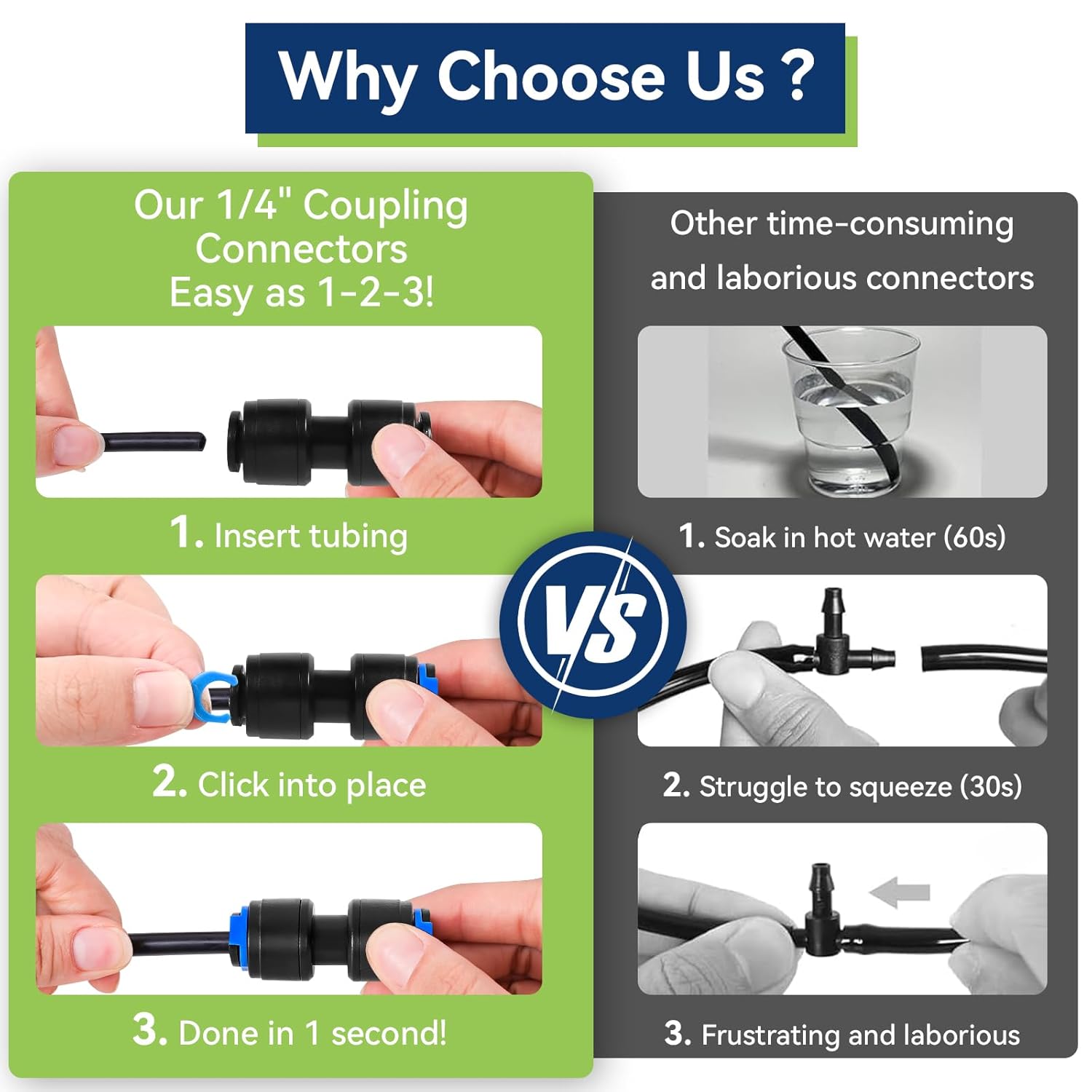 10 Pack 1/4" Drip Universal Straights Fitting Connectors, Quick Connect Universal Drip Irrigation Tubing Coupling Valve, Connector Locking Fitting for Sprinkler or Drip Irrigation System