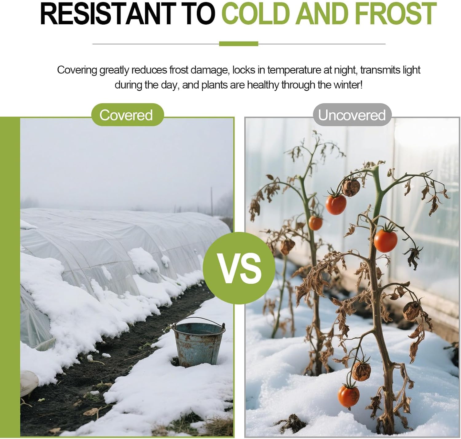 - FROST & FREEZE PROTECTION: The garden fabric plant cover can reduce frost damage for cold-sensitive plants like citrus, tomatoes, and roses. Locks in warmth at night while maintaining optimal airflow and moisture through effect, protect plants from UV damage, unique design allows moisture and air to pass through, winter survival made easy