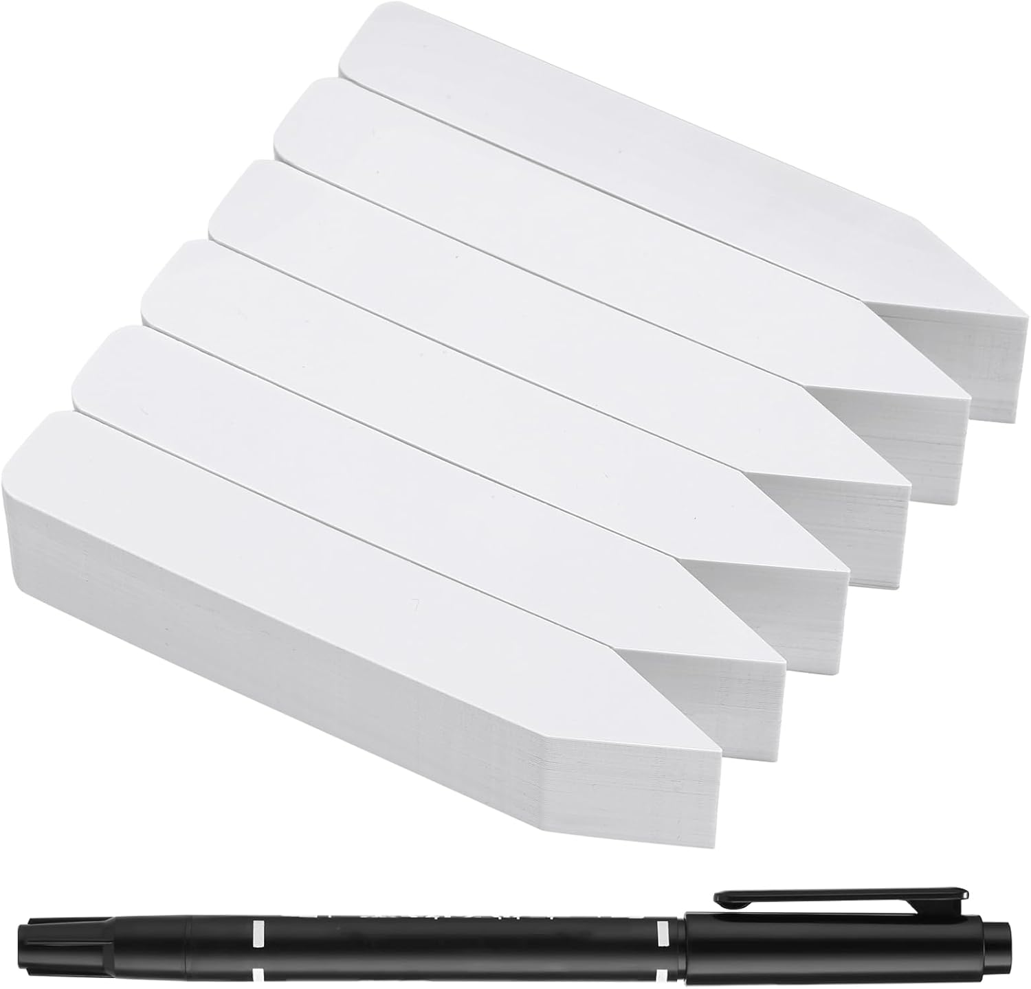 300 Pcs Plant Labels, 4 Inch Plastic Potted Plant Name Tags, Seedlings Seed Label Markers Nursery Plant Stake Tag with Bonus Marking Pen for Outdoor Indoor Garden Patio Flower Vegetable, White