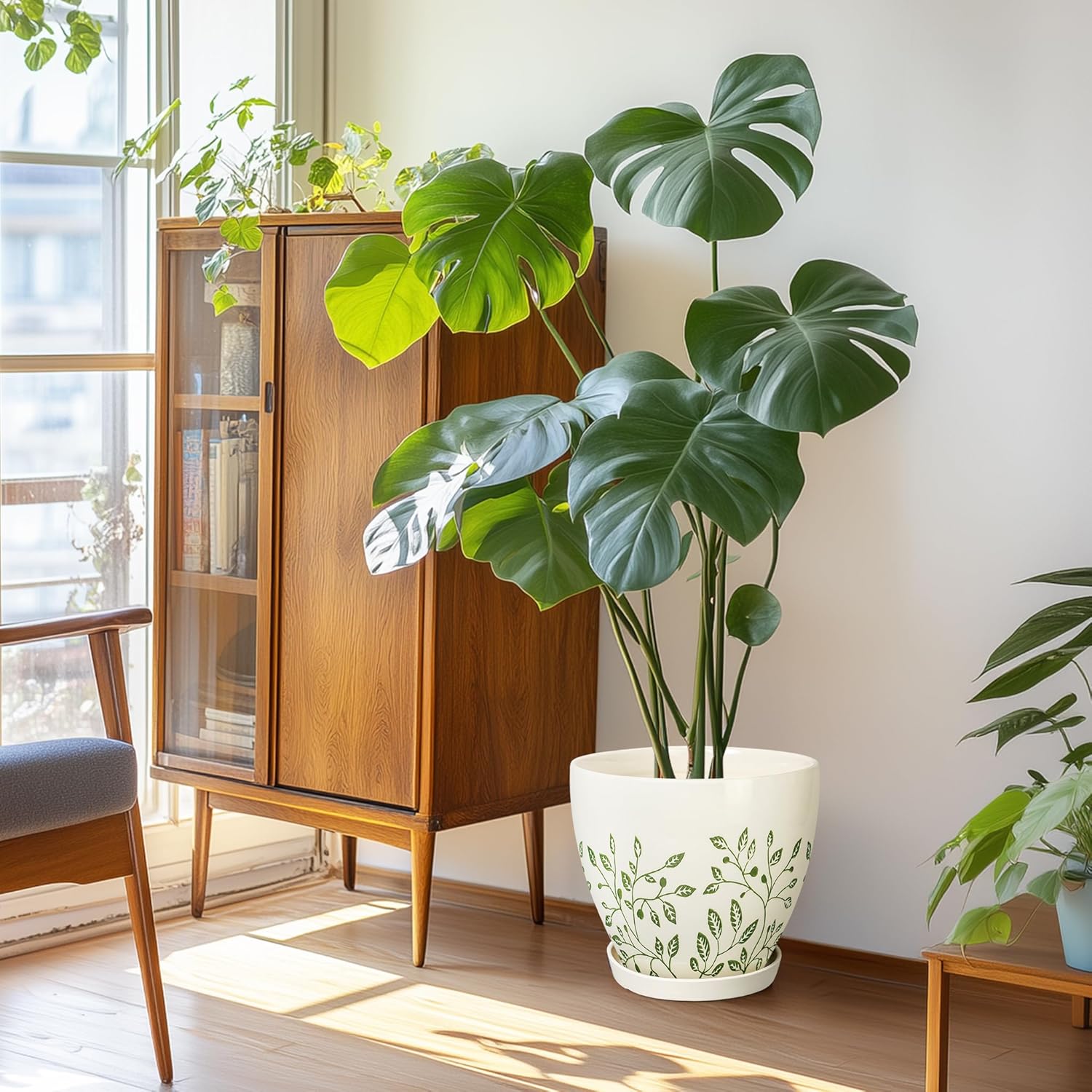 - Suitable for A Variety of Plants: This 10 inch plant pot ideal for indoor plants like olive tree, snake plant, money tree, zz plant, monstera, pothos, peace lily, palm, fiddle leaf fig, bird of paradise, pachira aquatica, and so on