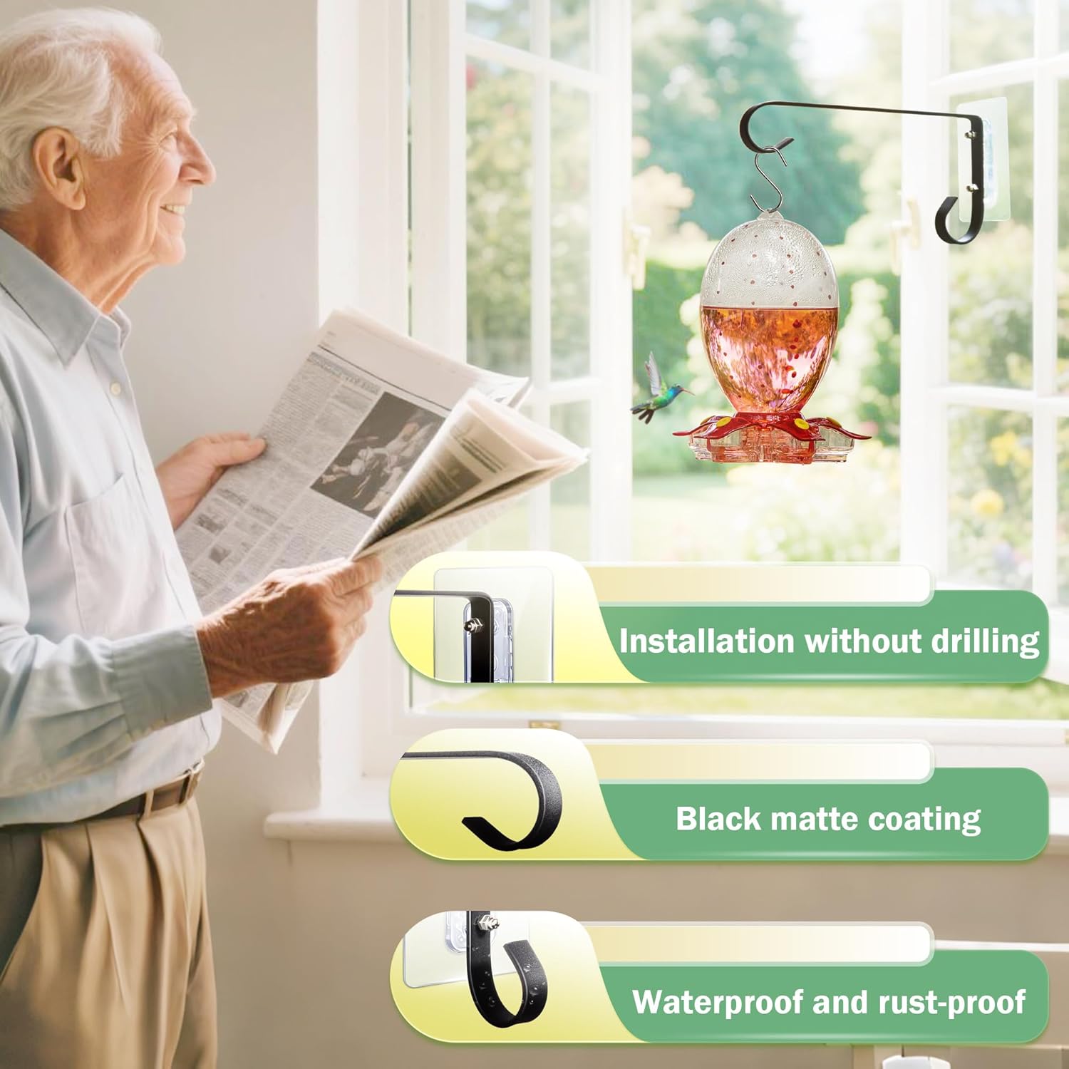 - Versatile Applications of Hook: Not only suitable for hanging window hummingbird feeders, but also perfect for hanging wind chimes, garlands, plants, decorative artworks, etc., meeting various household decoration needs. Whether you're using it as a bird feeder window or for other decorative purposes, this hook provides both functionality and aesthetic appeal.