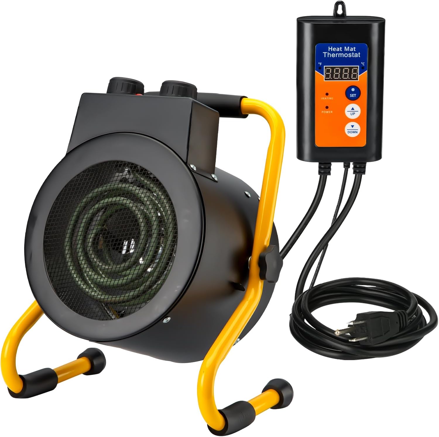 - DIGITAL THERMOSTAT: The electric greenhouse heater features a digital thermostat for precise, energy-efficient temperature control, fostering optimal plant growth. With an adjustable range of 40℉-108℉ (5℃-42℃), it automatically shuts off if the temperature exceeds the set point by 1°C.