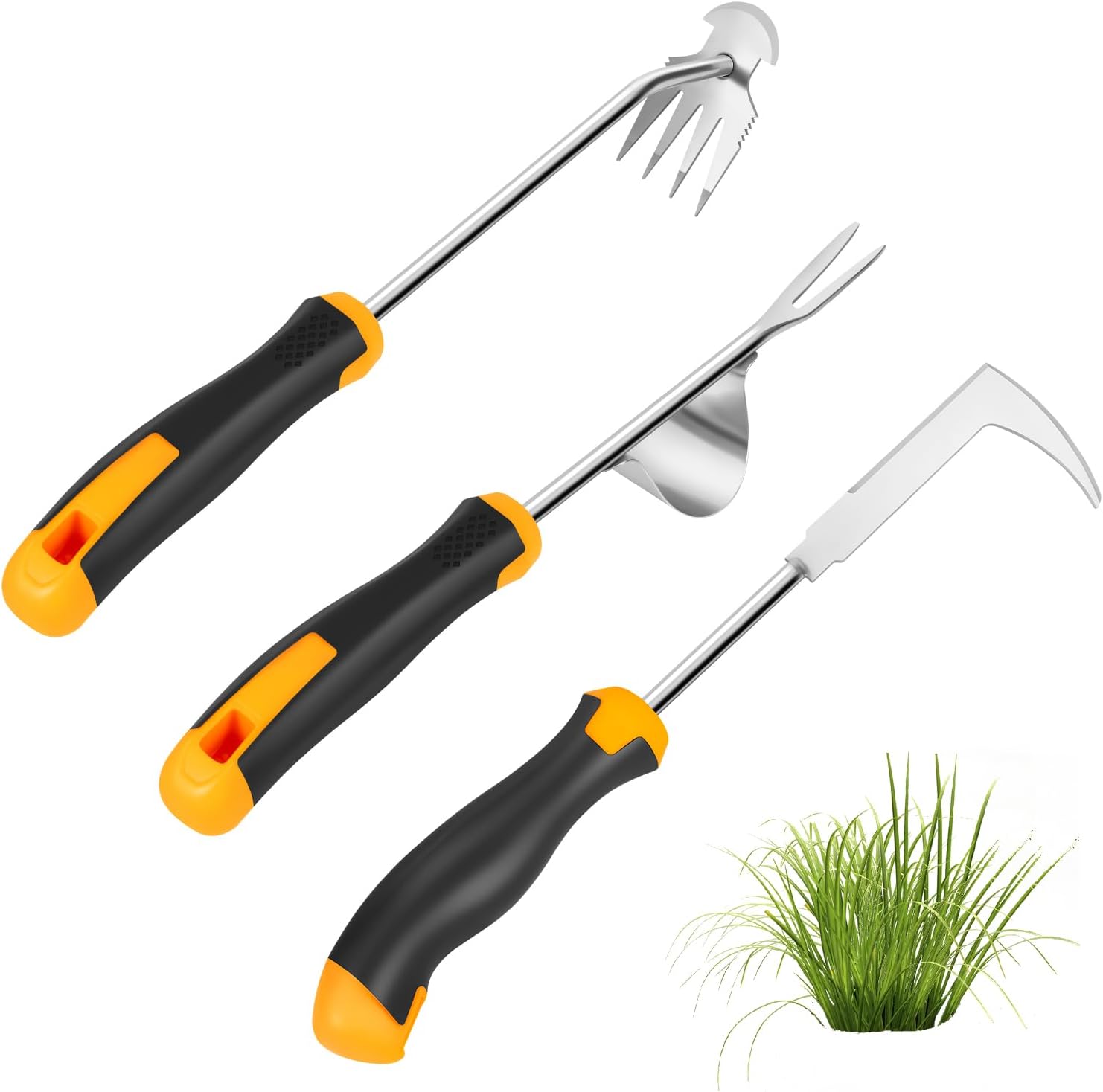 - Popular Gardening Weeding Tools - The comfortable ergonomic handle features a non-slip cushioned grip designed to reduce hand fatigue and provide optimal control during extended use. Stainless steel head resists soil buildup; simply rinse or wipe clean after use. No sharpening required for repeated use.