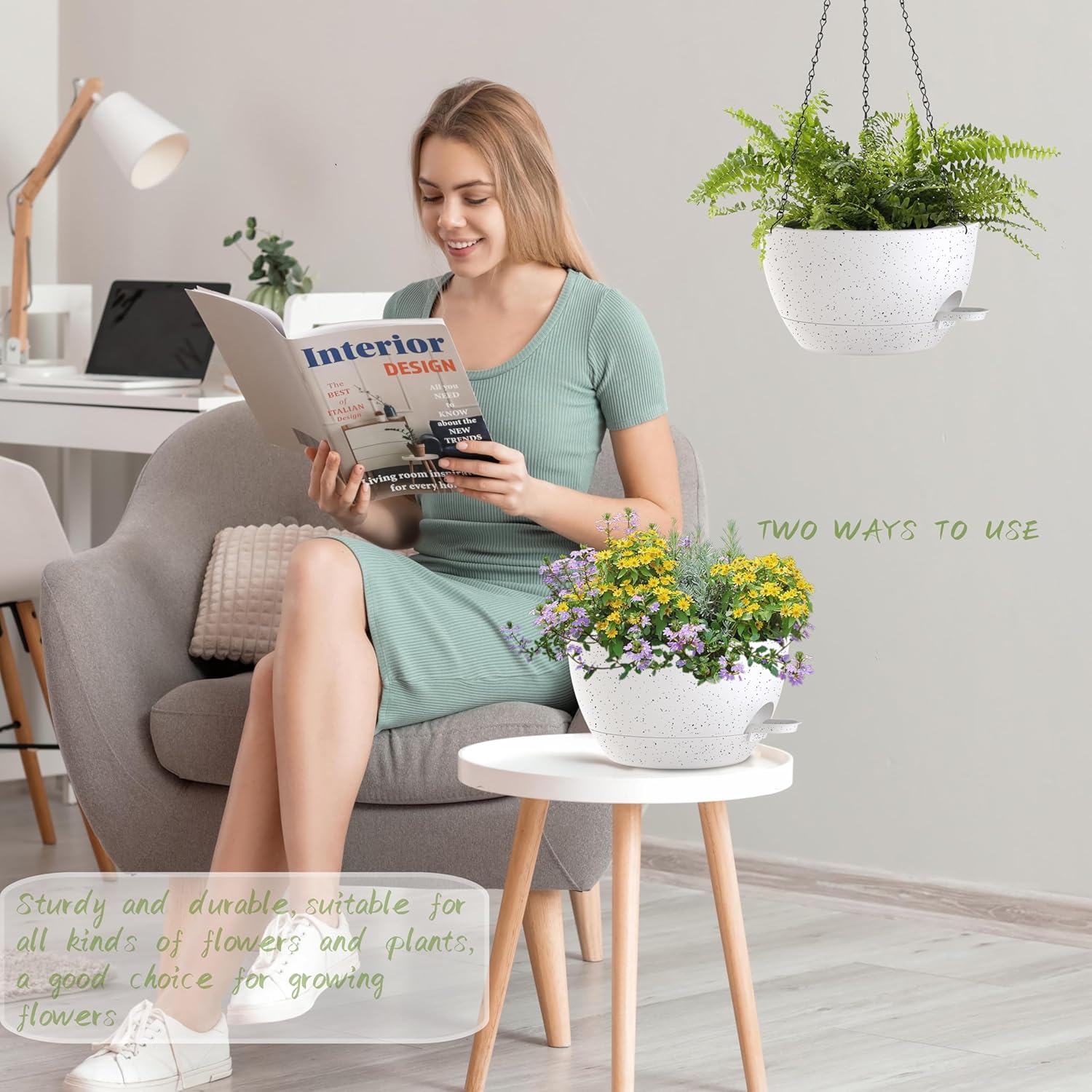 - 【Minimalist Modern Design】Trendy Colors and a Modern look allow this decorative Pot to fit into any Indoor and Outdoor setting. these 12" Hanging Pots offer generous space for your greenery. Good for creating eye-catching botanical arrangements