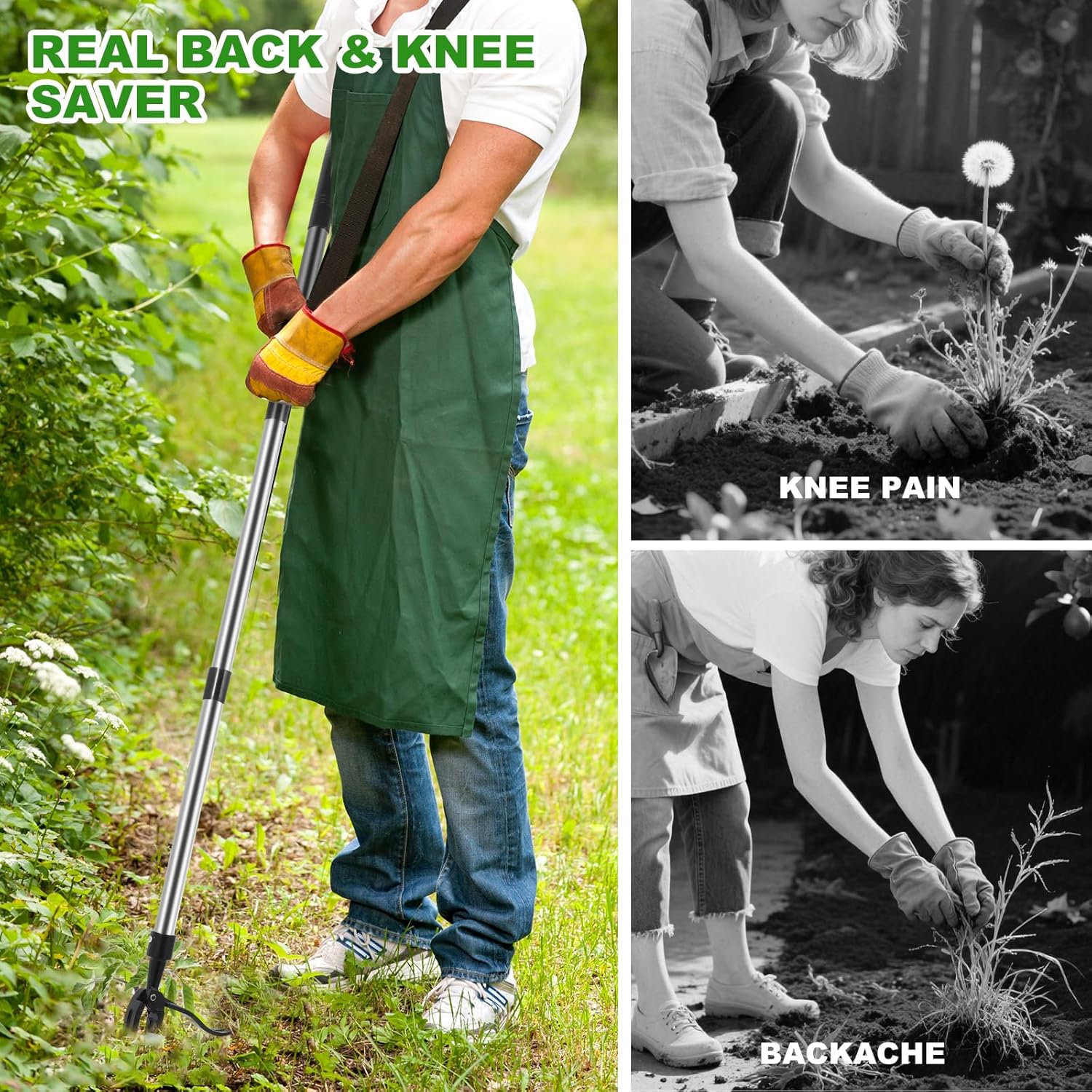 - [Triple-Adjustable Handle] Stand Up Weeder, Features a triple-adjustable handle with 28″-44″ range, Children and Adults Can Be Suitable, Standing and Pulling Weeds without Bending or Kneeling Down.