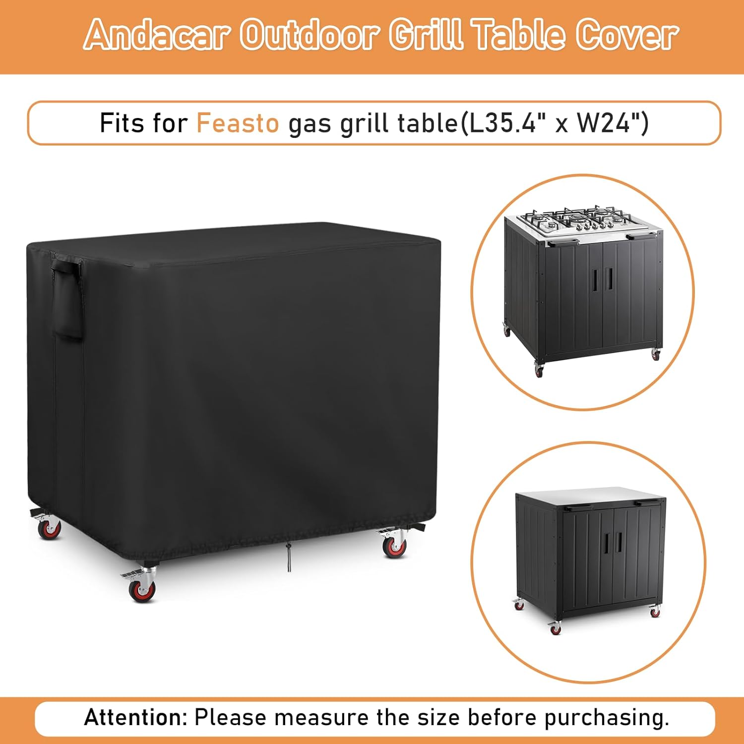 - Size: The gas grill cover is fit for Feasto gas grill table(36"L x 24"W x 36"H); Please measure the size before purchasing